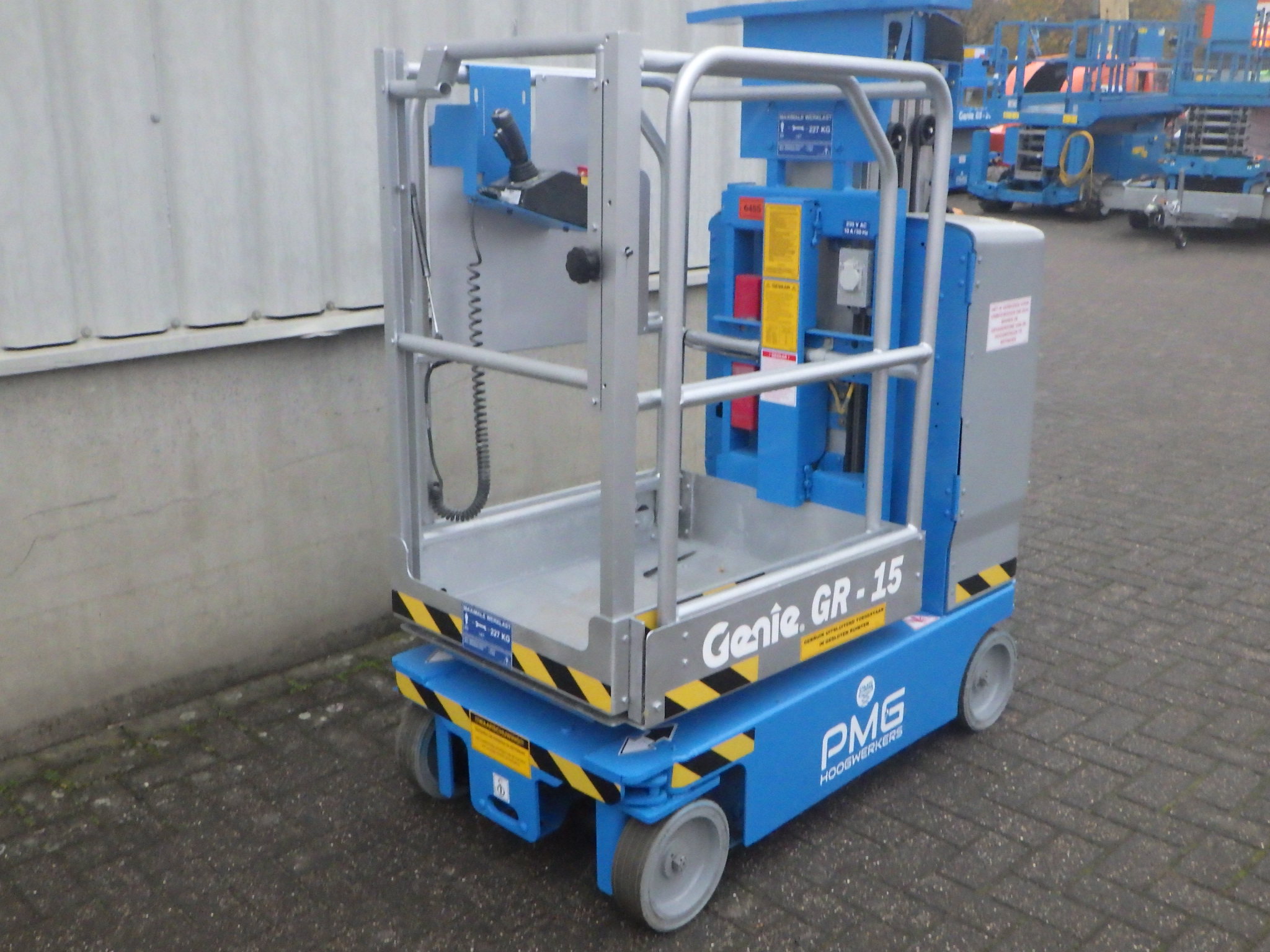 Deze Genie GR-15 masthoogwerker is een in uitstekende staat verkerende machine. Met een werkhoogte van 6,47 meter en een platformbelasting tot 227 kilogram is de eenpersoonshoogwerker perfect om binnen te gebruiken. Met non-marking banden, een laag eigen gewicht, elektrische besturing, zeer compacte bouw en een tot 1,40 meter uitschuifbaar platform, heeft de Genie GR-15 perfecte eigenschappen voor een zeer uitgebreide range van taken. Doordat deze machine op volledige hoogte kan rijden, biedt deze machine alles wat u zoekt om de productiviteit te verhogen. Zoekt u een tweedehands masthoogwerker die in een uitstekende staat verkeert, gekeurd is én direct inzetbaar is, dan is deze Genie GR-15 van PMG Hoogwerkers de beste koop.
