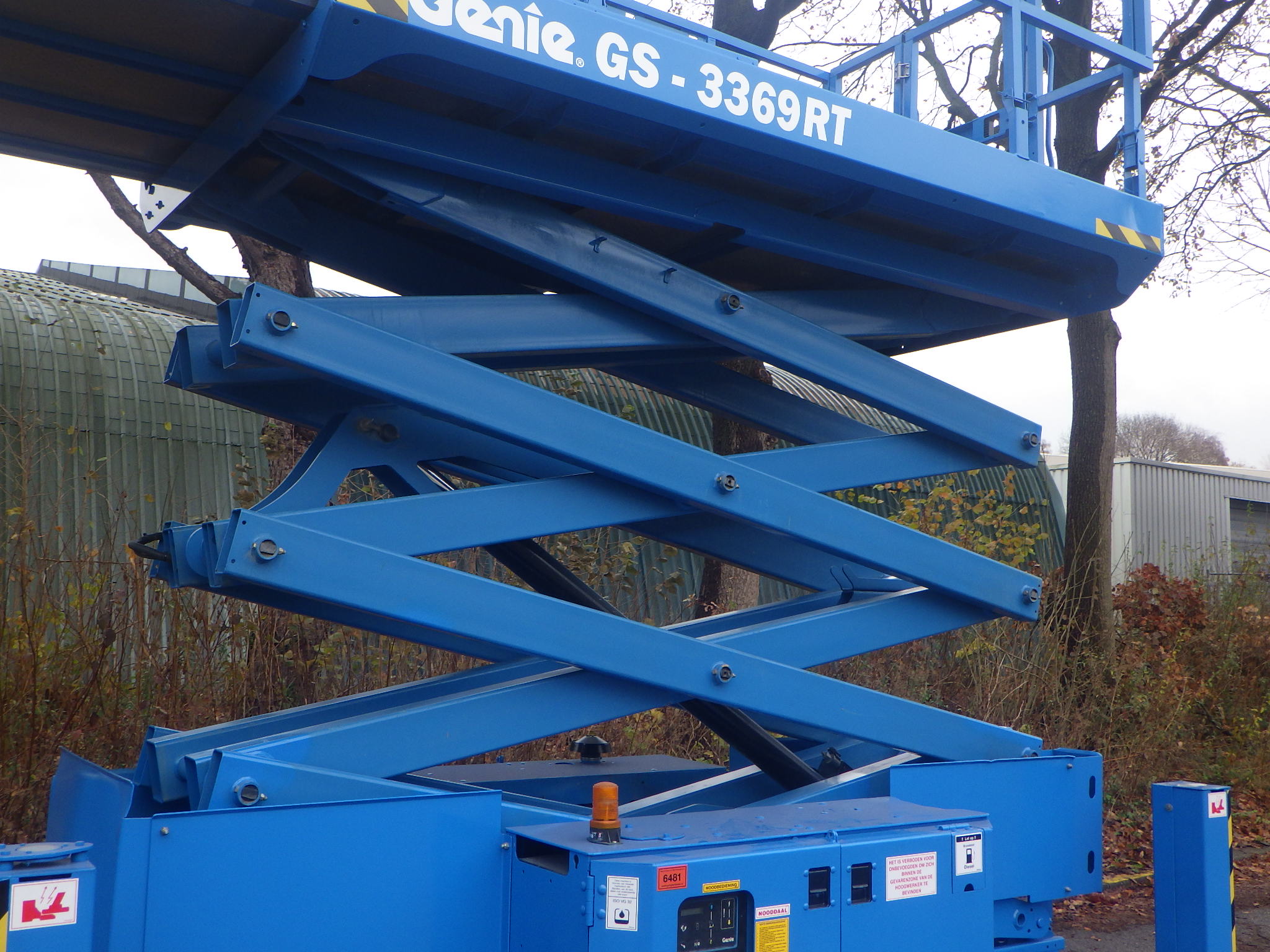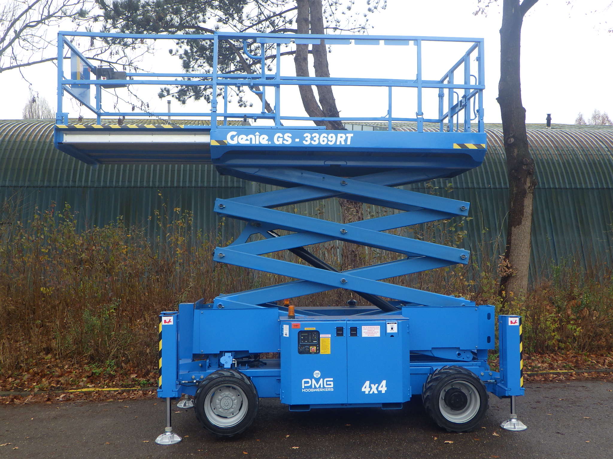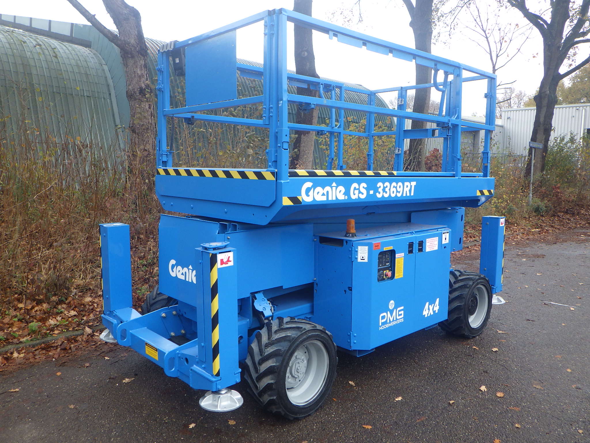 Deze zeer robuuste Genie GS-3369RT ruw terrein schaarhoogwerker is een in uitstekende staat verkerende machine. Met een werkhoogte van 11,96 meter en een platformbelasting tot 454 kilogram is de schaarhoogwerker perfect voor de zwaarste klussen. De Deutz diesel motor en 4 x 4 aandrijving maakt de Genie GS-3369RT perfect inzetbaar op de ruwste bouwplaatsen. De stempels maken het mogelijk om ook op zeer ongelijke oppervlakte de maximale hoogte te bereiken. De lengte van het platform, volledig uitgeschoven 4,32m lang, maakt deze machine uiterst geschikt om grote oppervlakte met meerdere personen te bewerken. Zoekt u een tweedehands ruw terrein schaarhoogwerker die in een uitstekende staat verkeert, gekeurd is én direct inzetbaar is, dan bent u bij deze Genie GS-3369RT van PMG Hoogwerkers aan het juiste adres!