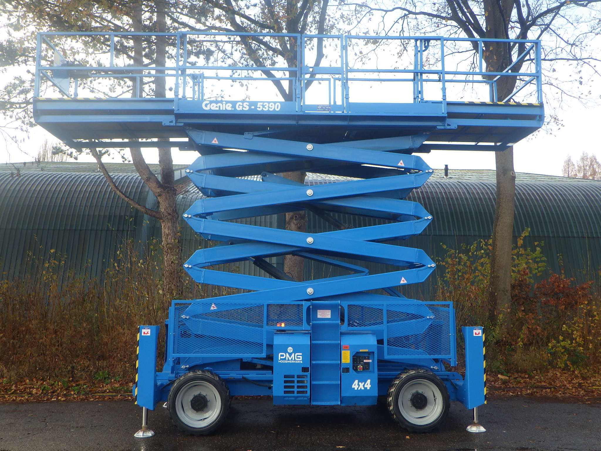 Deze zeer robuuste Genie GS-5390 ruw terrein schaarhoogwerker is een in uitstekende staat verkerende machine. Met een werkhoogte van 18 meter en een platformbelasting tot 680 kilogram is de schaarhoogwerker perfect voor de zwaarste klussen. De Deutz diesel motor en 4 x 4 aandrijving maakt de Genie GS-5390 perfect inzetbaar op de ruwste bouwplaatsen. De stempels maken het mogelijk om ook op zeer ongelijke oppervlakte de maximale hoogte te bereiken. De grote lengte van het Mega Deck Platform, volledig uitgeschoven 7,35m lang (twin extension), maakt deze machine uiterst geschikt om grote oppervlakte met meerdere personen te bewerken. Zoekt u een tweedehands ruw terrein schaarhoogwerker die in een uitstekende staat verkeert, gekeurd én direct inzetbaar is, dan bent u bij deze Genie GS-5390 van PMG Hoogwerkers aan het juiste adres!