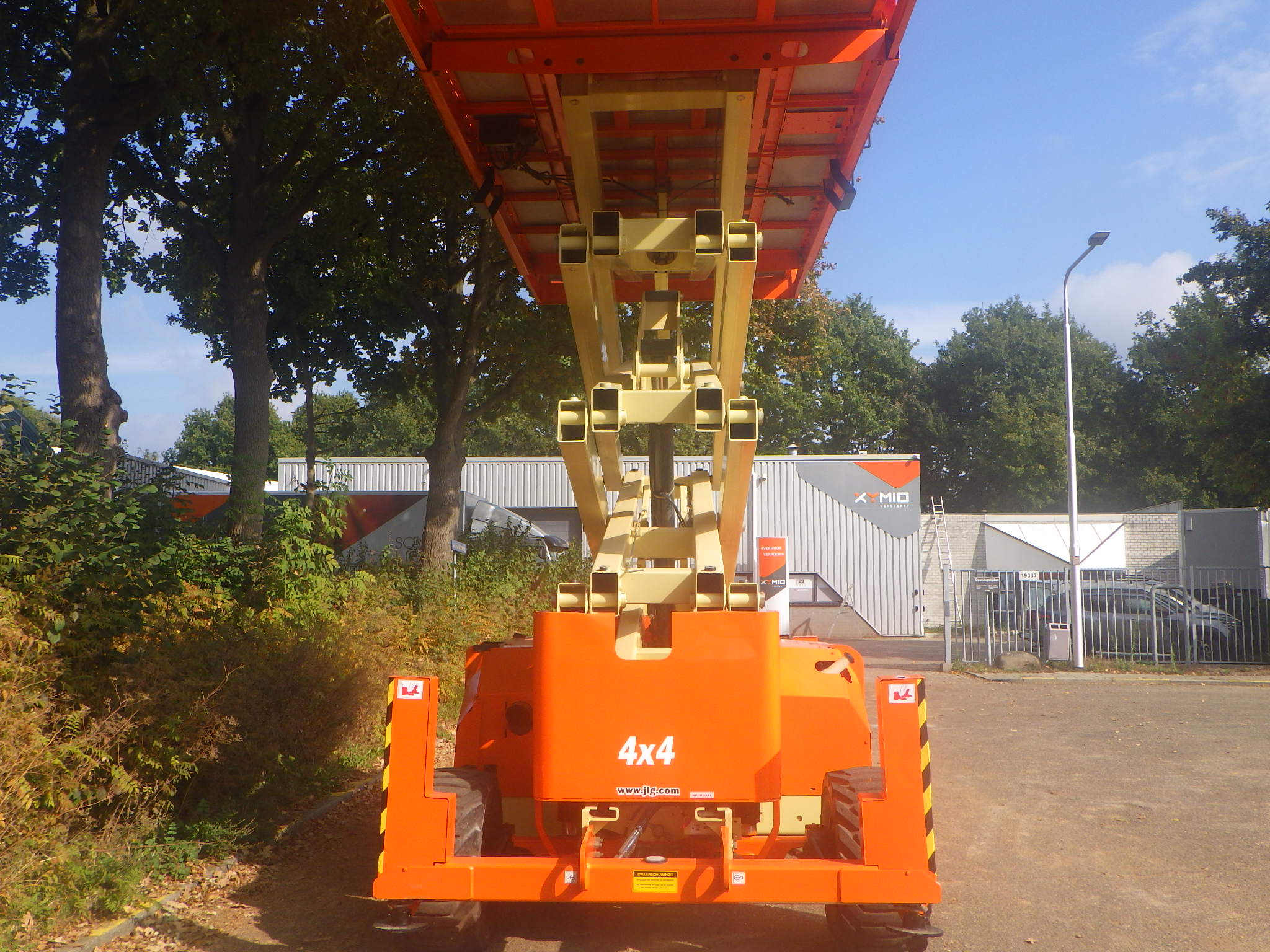 Deze JLG 4394RT ruw terrein schaarhoogwerker is een in uitstekende staat verkerende machine. Met een werkhoogte van 15,11 meter en een platformbelasting tot 680 kilogram is de schaarhoogwerker perfect om uw productiviteit te verhogen. De diesel motor en 4 x 4 aandrijving maakt de JLG 4394RT perfect inzetbaar op de ruwste bouwplaatsen. De stempels maken het mogelijk om ook op zeer ongelijke oppervlakte de maximale hoogte te bereiken. De grote lengte van het platform, volledig uitgeschoven 5,03 meter lang maakt deze machine uiterst geschikt om grote oppervlakte met meerdere personen te bewerken.