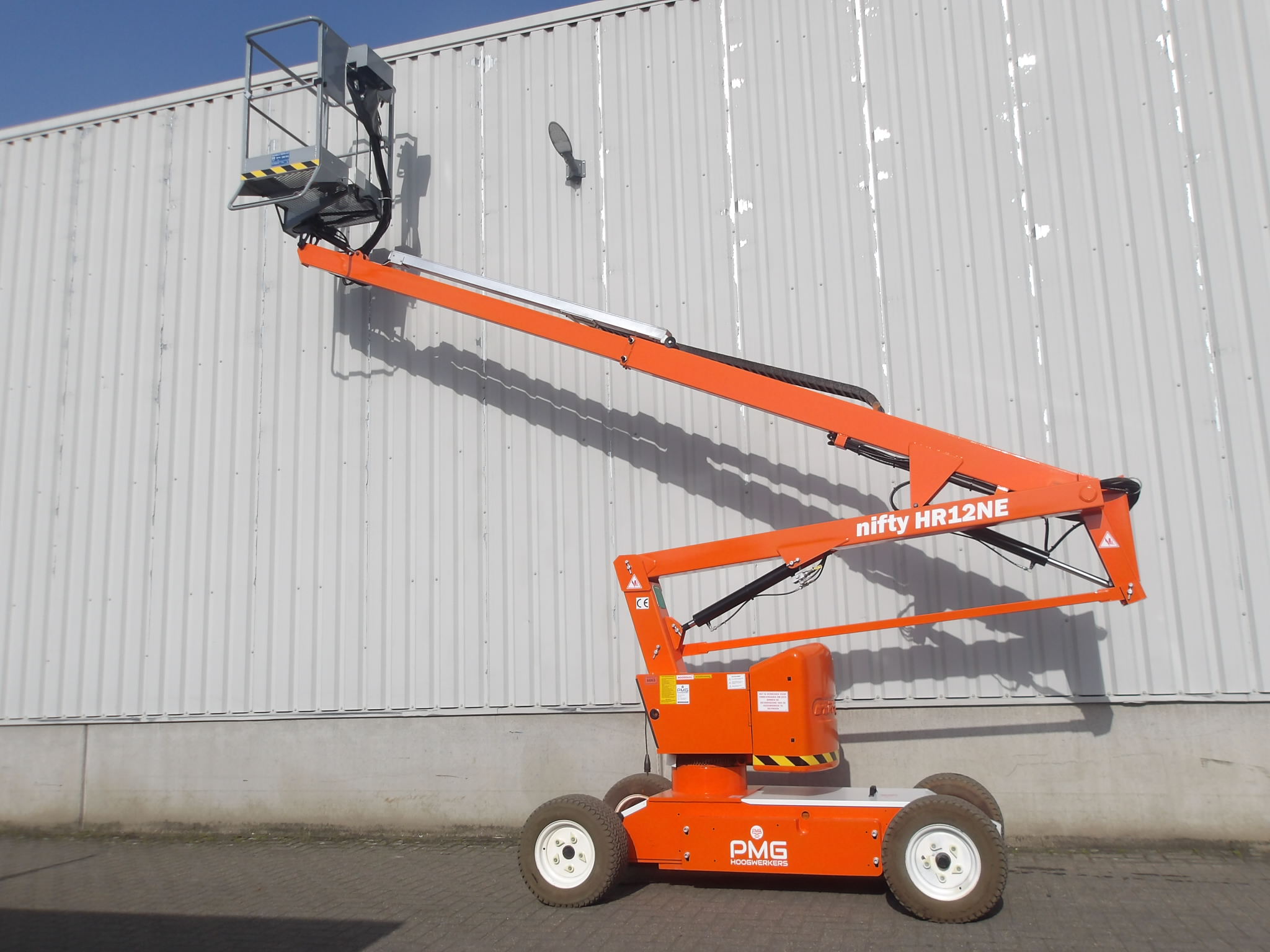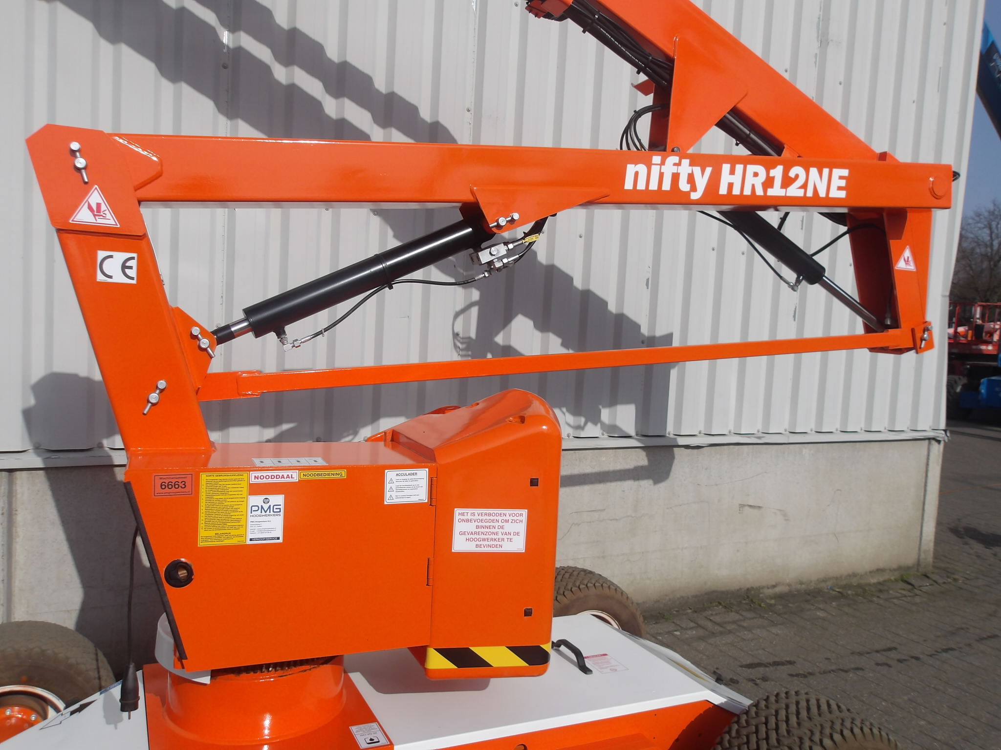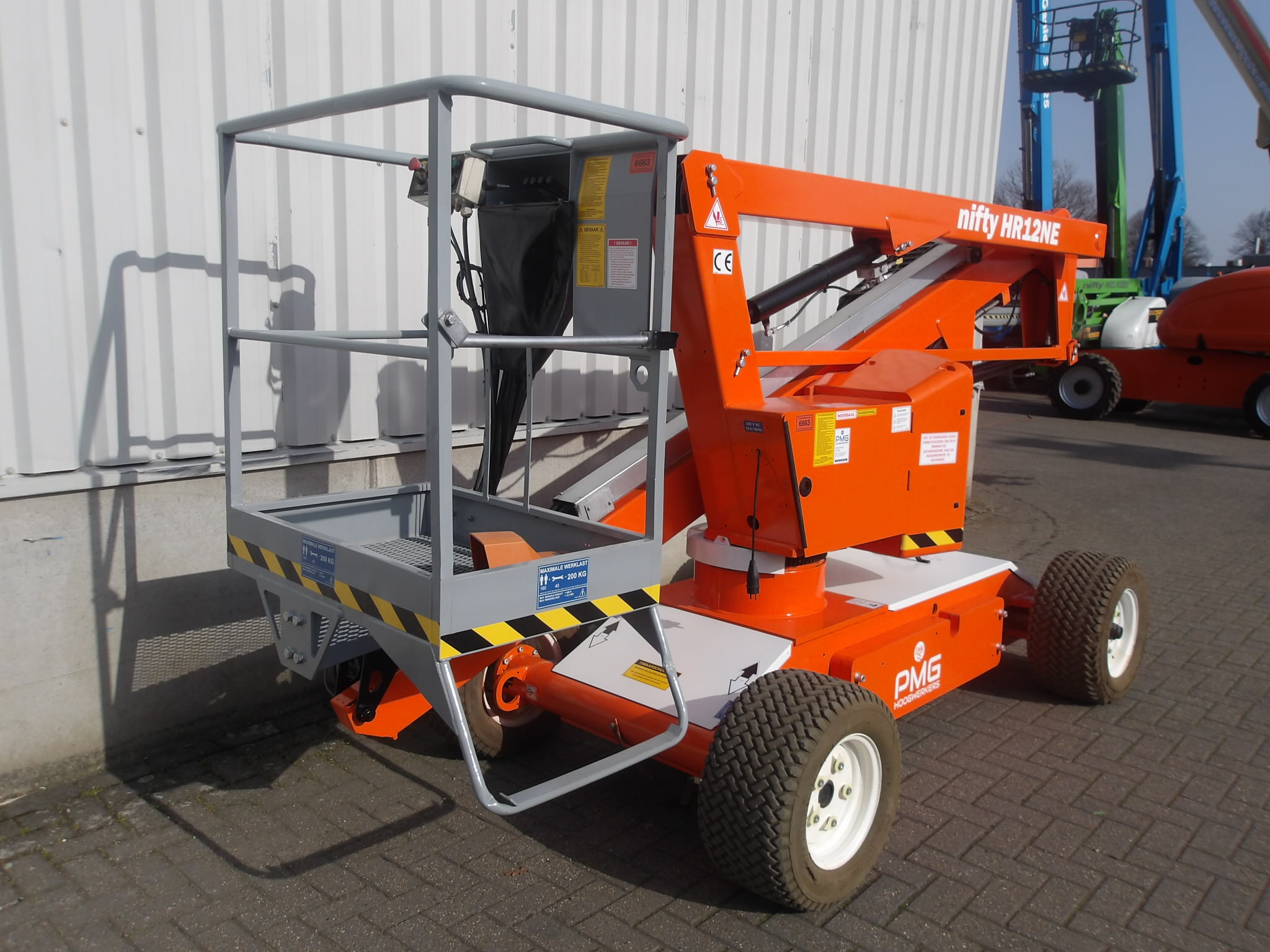 Deze Nifty HR12NE kniktelescoop hoogwerker is een in uitstekende staat verkerende machine. Met een werkhoogte van 12 meter en een zijdelings bereik van 6 meter is deze kniktelescoophoogwerker zeer geschikt om uw productiviteit te verhogen. Het lage gewicht van 3 ton zorgt ervoor dat deze machine op een aanhanger vervoert kan worden. Zoekt u een tweedehands kniktelescoophoogwerker die in een uitstekende staat verkeert, gekeurd is én direct inzetbaar is, dan bent u bij deze Niftylift HR12NE van PMG Hoogwerkers aan het juiste adres!