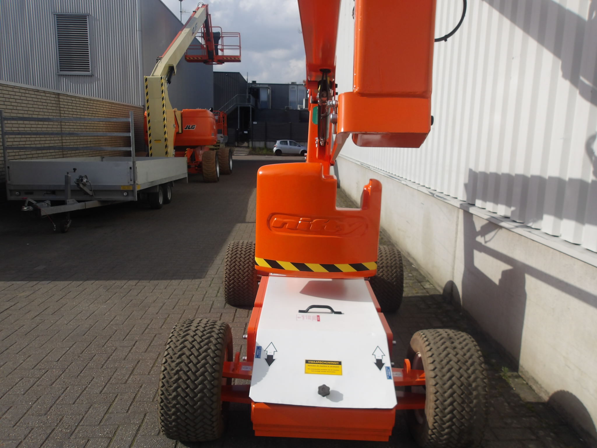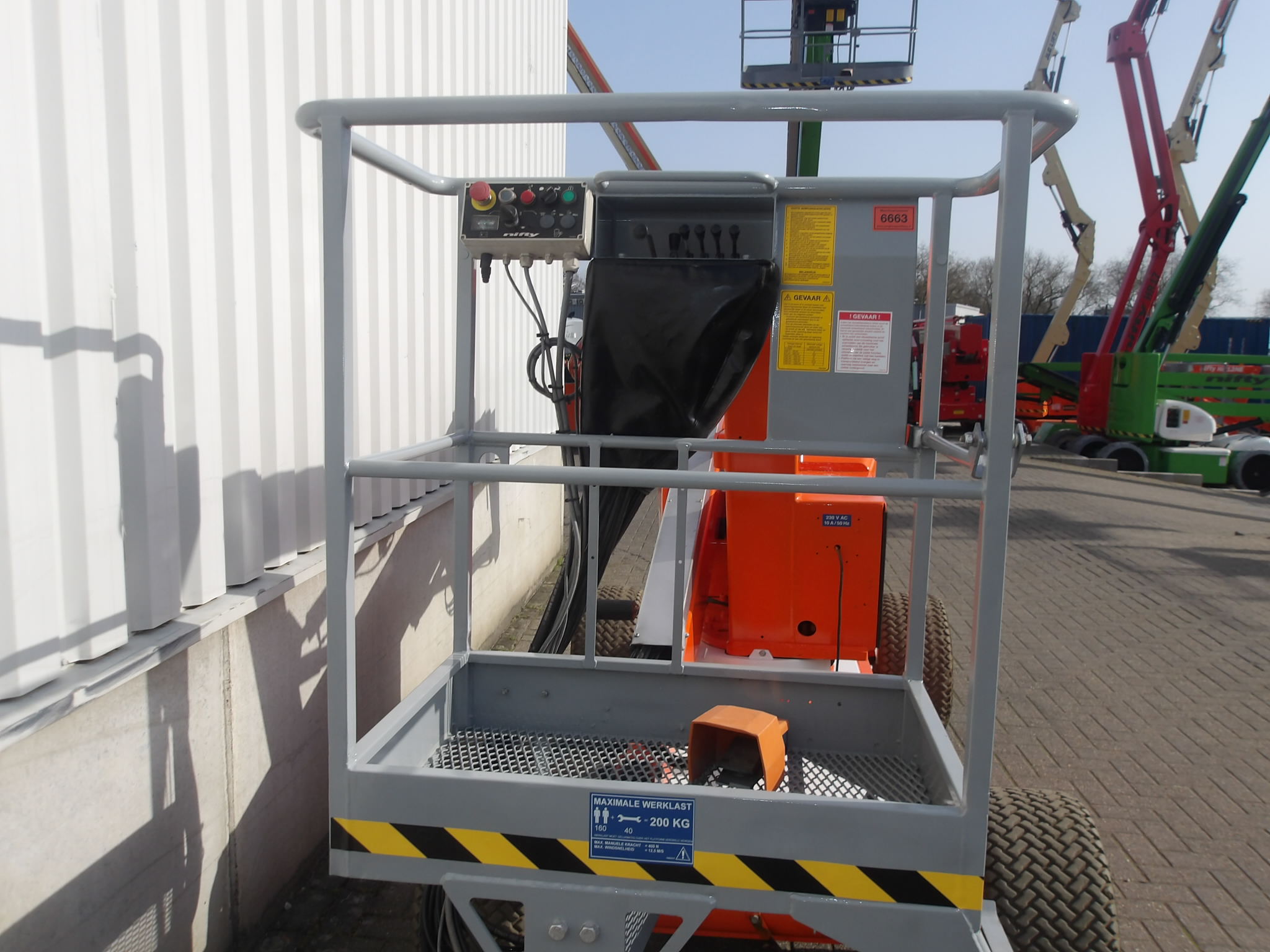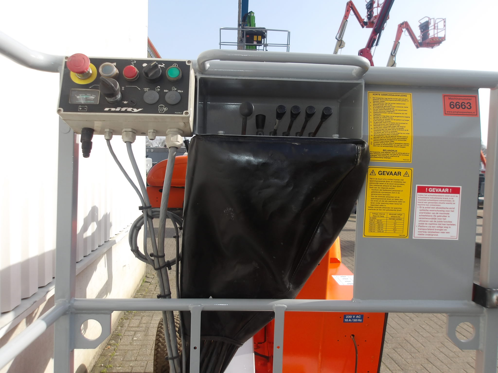 Deze Nifty HR12NE kniktelescoop hoogwerker is een in uitstekende staat verkerende machine. Met een werkhoogte van 12 meter en een zijdelings bereik van 6 meter is deze kniktelescoophoogwerker zeer geschikt om uw productiviteit te verhogen. Het lage gewicht van 3 ton zorgt ervoor dat deze machine op een aanhanger vervoert kan worden. Zoekt u een tweedehands kniktelescoophoogwerker die in een uitstekende staat verkeert, gekeurd is én direct inzetbaar is, dan bent u bij deze Niftylift HR12NE van PMG Hoogwerkers aan het juiste adres!