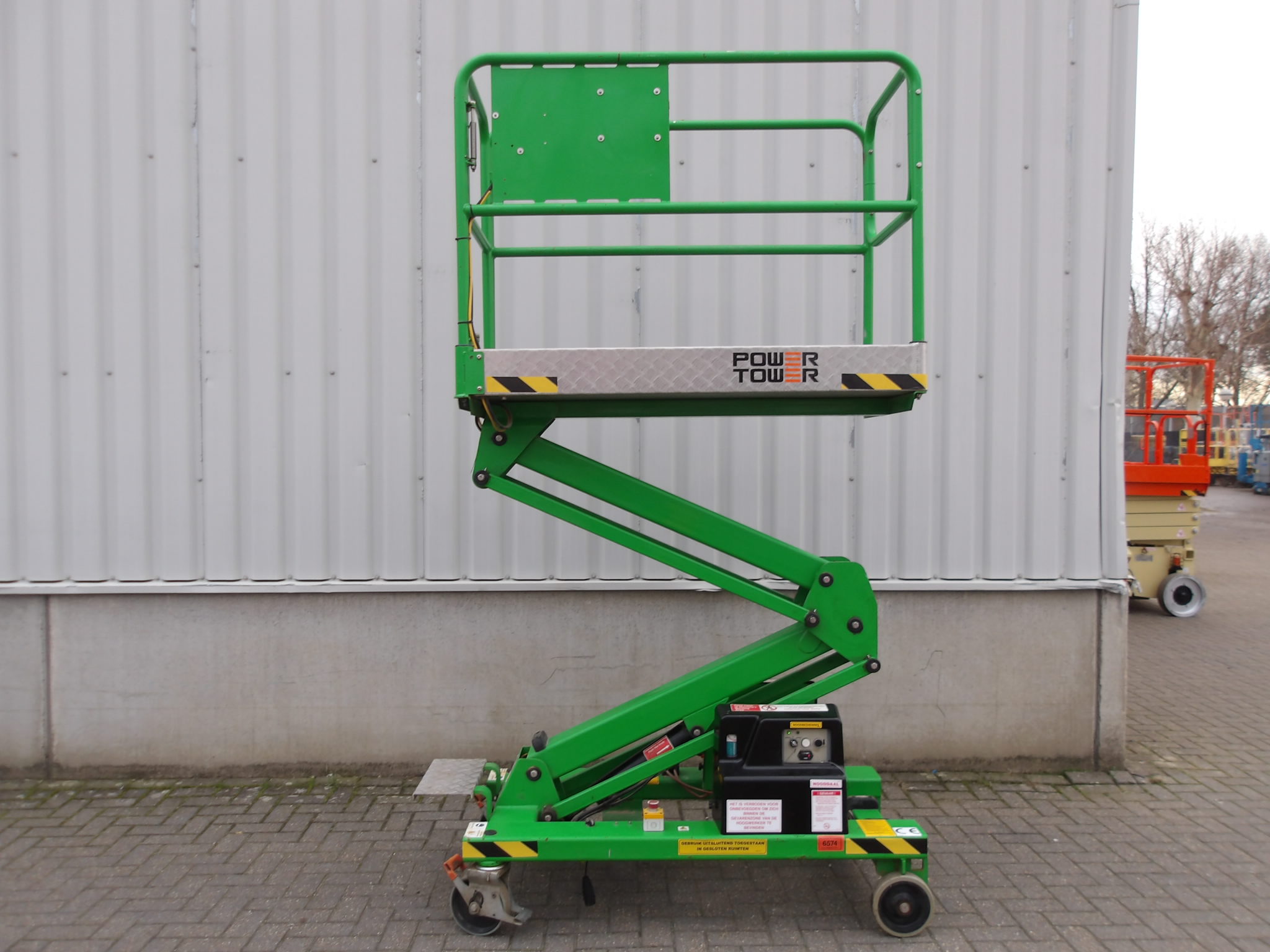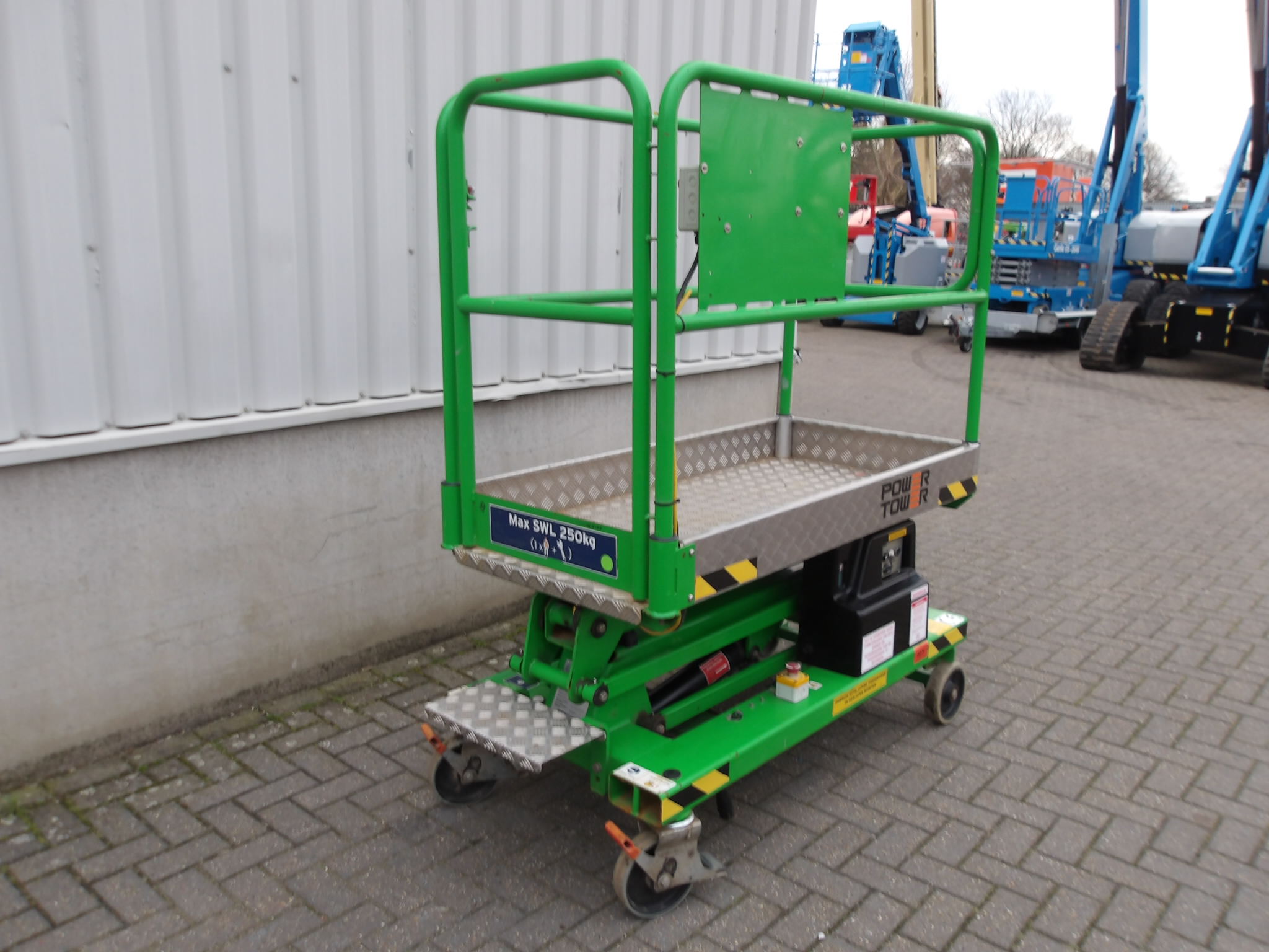 Deze Power Towers power Tower hoogwerker is een in uitstekende staat verkerende machine. Met een werkhoogte van 5,10 meter en een platformbelasting tot 250 kilogram is de eenpersoonshoogwerker perfect om binnen te gebruiken. Met non-marking banden, een laag eigen gewicht van 365 kg en zeer compacte, lichte bouw, heeft de Power Towers Power Tower lift perfecte eigenschappen om de productiviteit te verhogen. Zoekt u een tweedehands hoogwerker die in een uitstekende staat verkeert, gekeurd is én direct inzetbaar is, dan is deze Power Towers Power Tower van PMG Hoogwerkers de beste koop