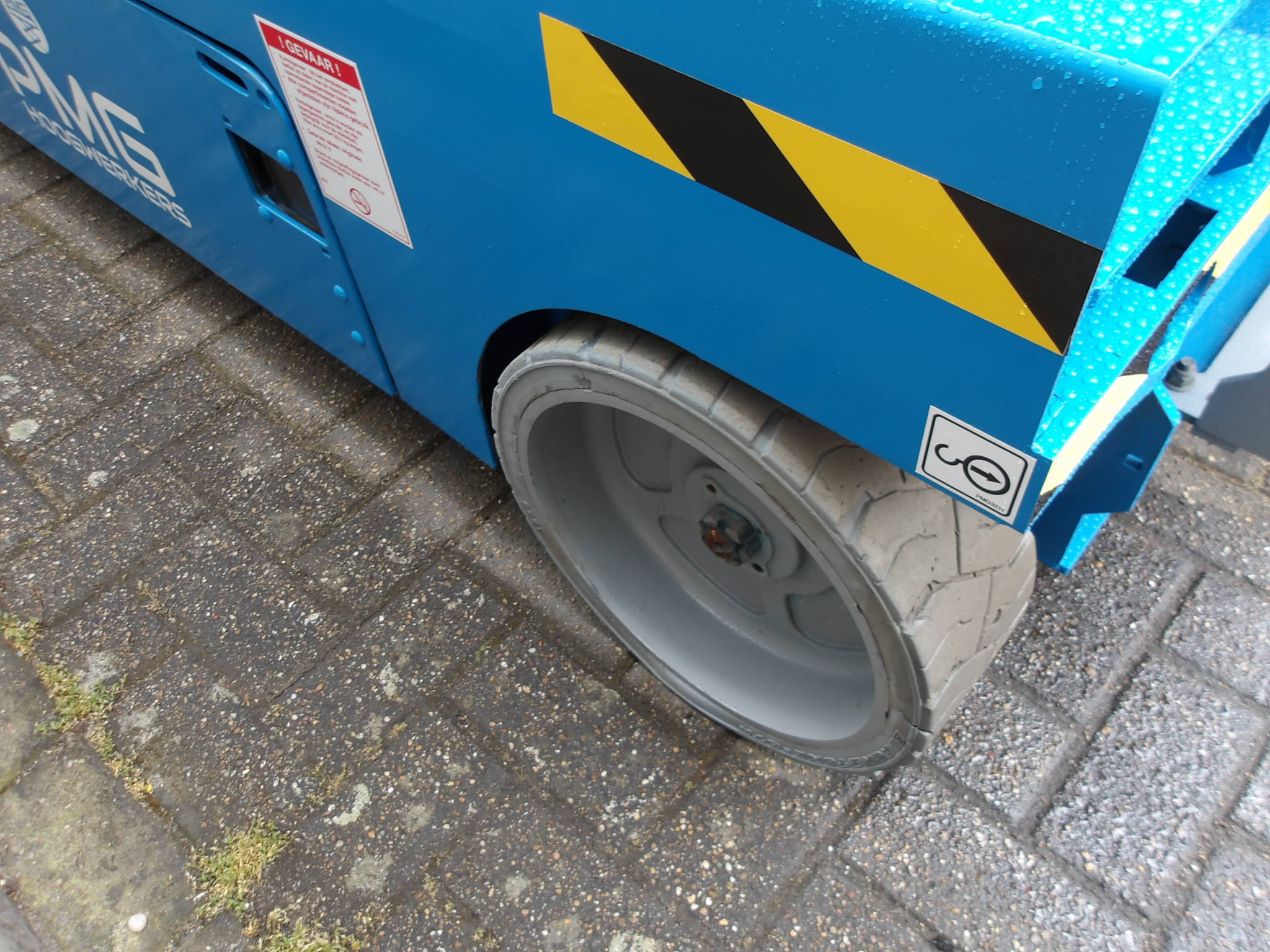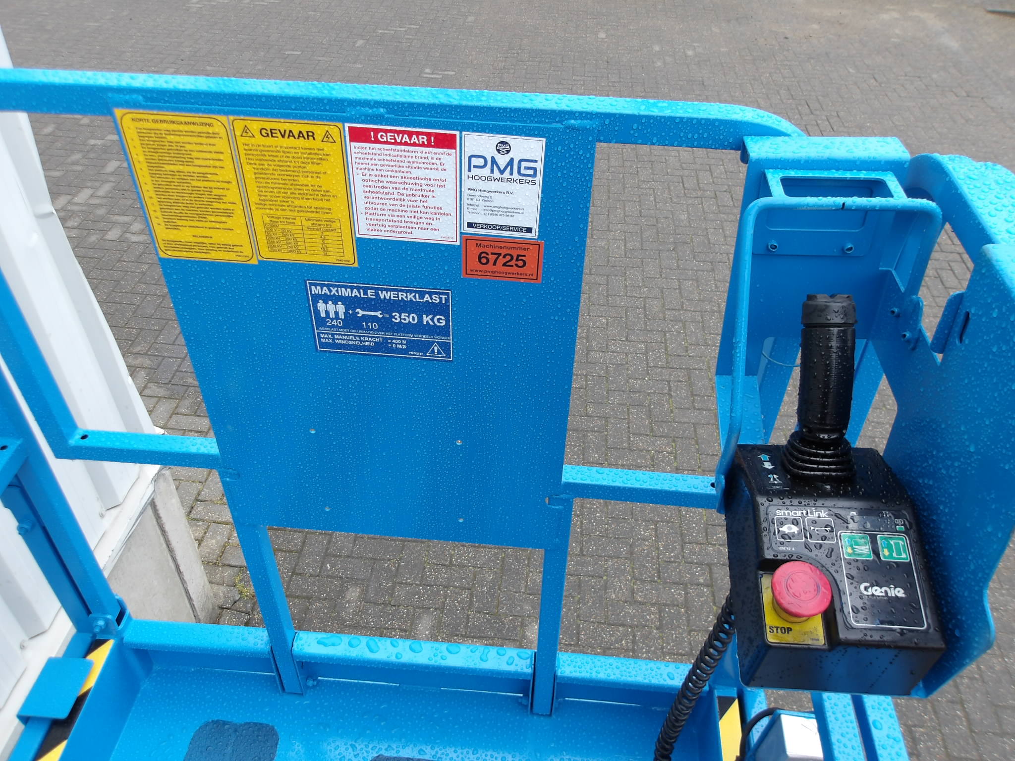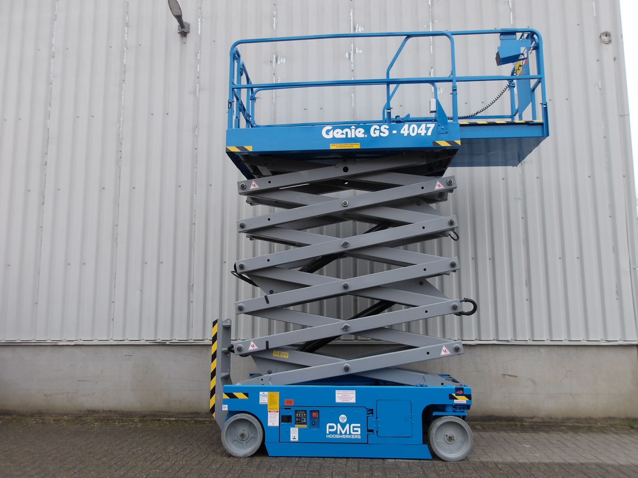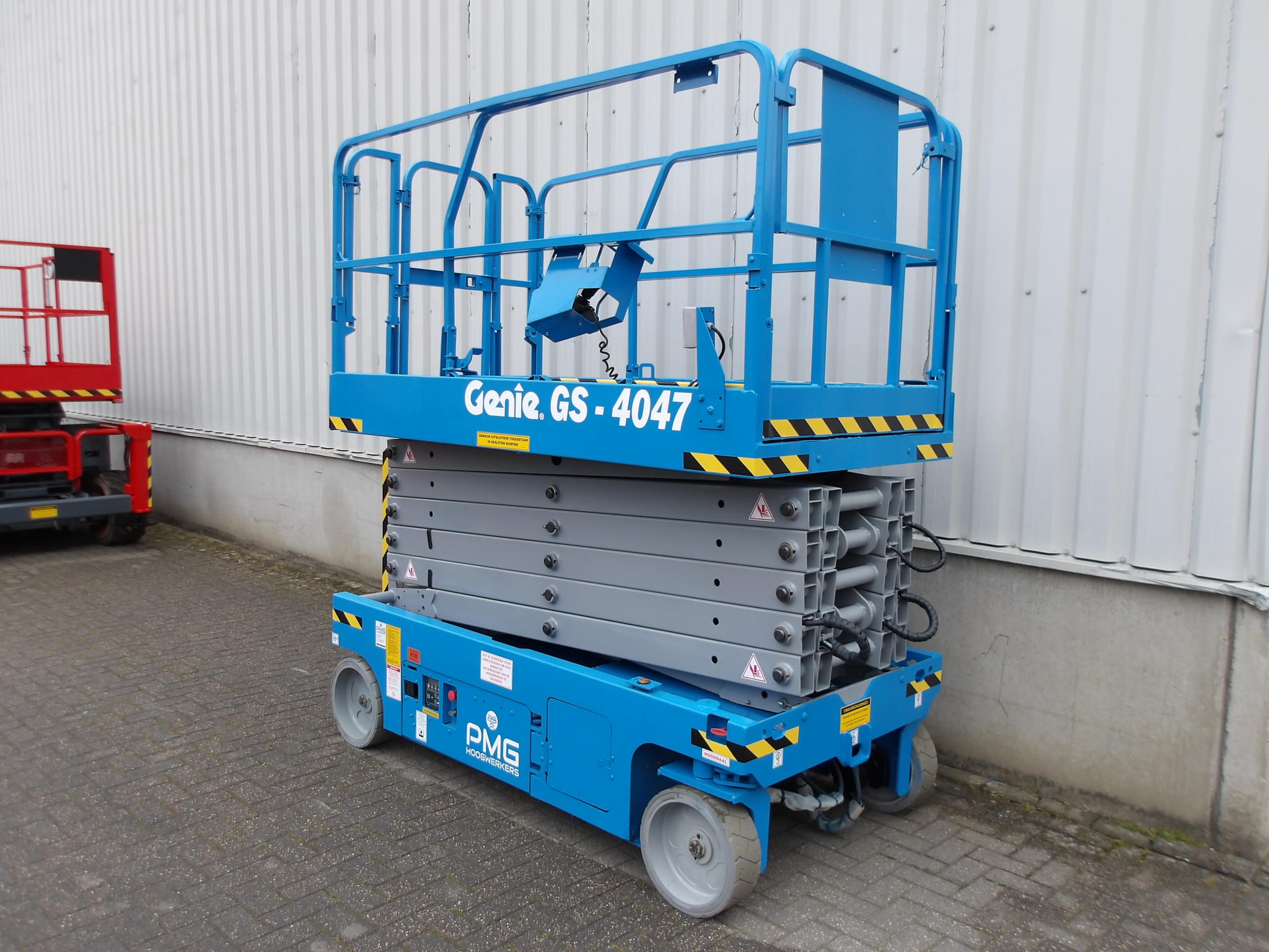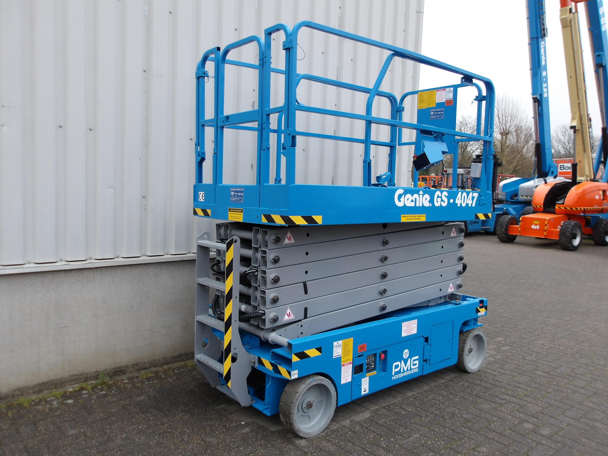 Diese Genie GS4047 Scherenarbeitsbühne ist eine Maschine in exzellentem Zustand. Mit einer Arbeitshöhe von 14 Metern und einer Plattformlast von bis zu 350 Kilogramm ist die Scherenarbeitsbühne ideal um Ihre Produktivität zu steigern. Mit spurlosen Reifen, elektrischer Steuerung und kompakter Bauweise bietet die GS4047 perfekte Eigenschaften für ein sehr breites Aufgabenspektrum. Da diese Maschine in voller Höhe fahren kann und nur 1,20 Meter breit ist, bietet sie eine enorme Flexibilität. Sind Sie auf der Suche nach einer gebrauchten Scherenarbeitsbühne, die sich in einem ausgezeichneten Zustand befindet, bewährt und einsatzbereit ist, dann ist diese Genie GS-4047 von PMG Hoogwerkers die passende Bühne für Sie!