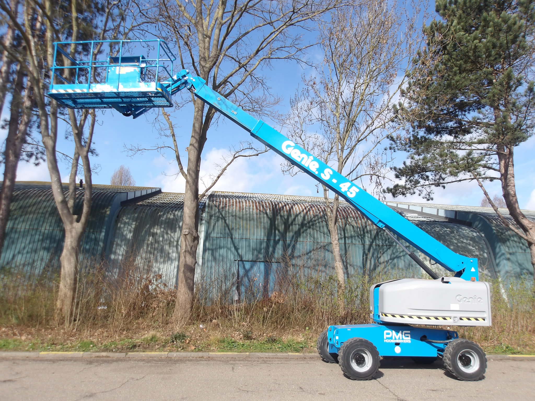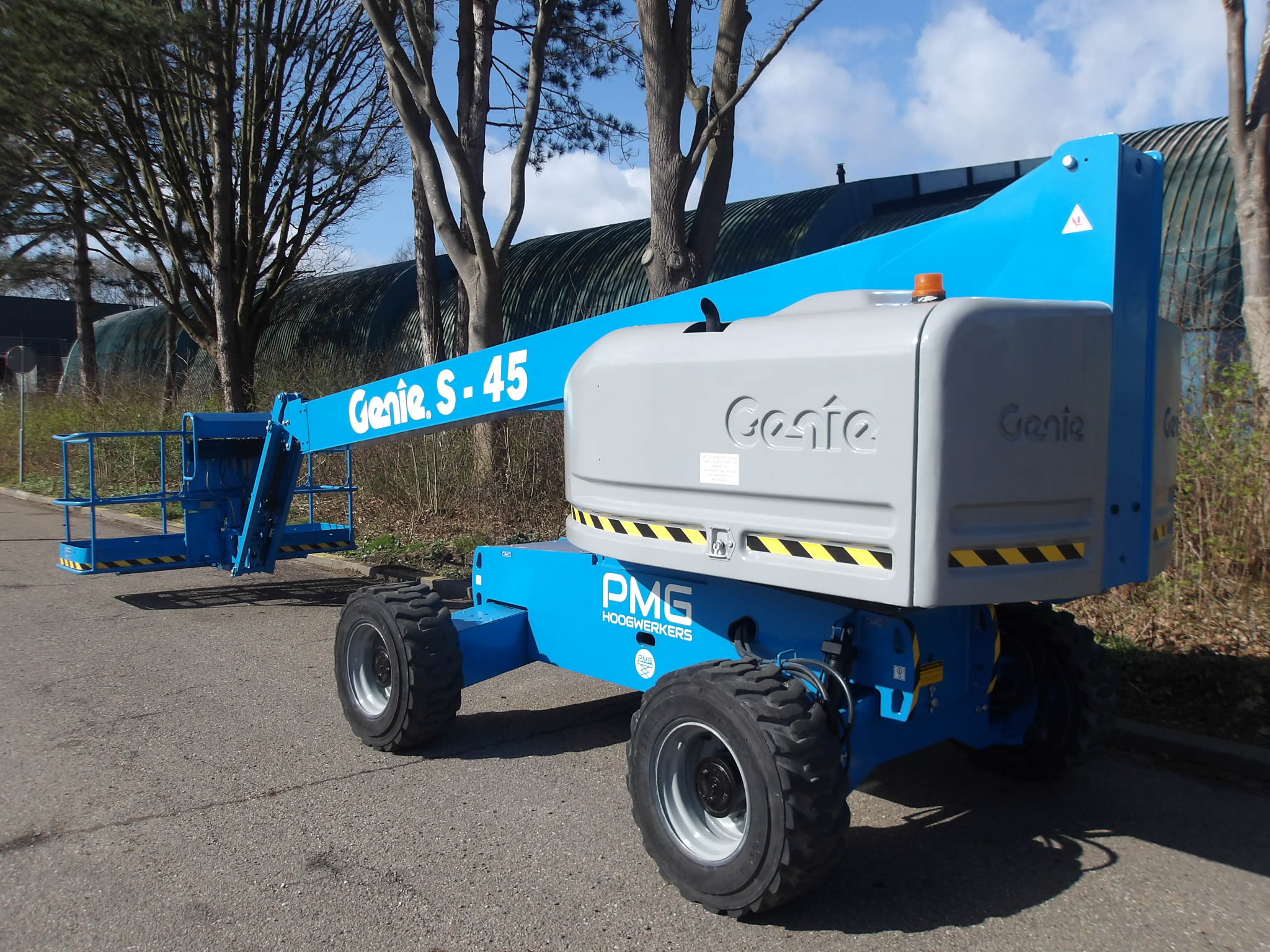 Diese Genie S-45 Teleskoparbeitsbühne ist eine Maschine in exzellentem Zustand. Mit einer Arbeitshöhe von 16 Metern und einer Plattformlast von bis zu 227 Kilogramm ist die Teleskoparbeitsbühne ideal um Ihre Produktivität zu steigern. Die seitliche Reichweite von 11,80 macht diesen S45 sehr geeignet für die schwierigeren Aufgaben. Da diese Maschine in voller Höhe fahren kann, kann diese Maschine sehr flexibel positioniert werden. Sind Sie auf der Suche nach einer gebrauchten Teleskopbühne, die sich in einem ausgezeichneten Zustand befindet, bewährt und einsatzbereit ist, dann ist diese Genie S-45 von PMG Techniek die passende Bühne für Sie!