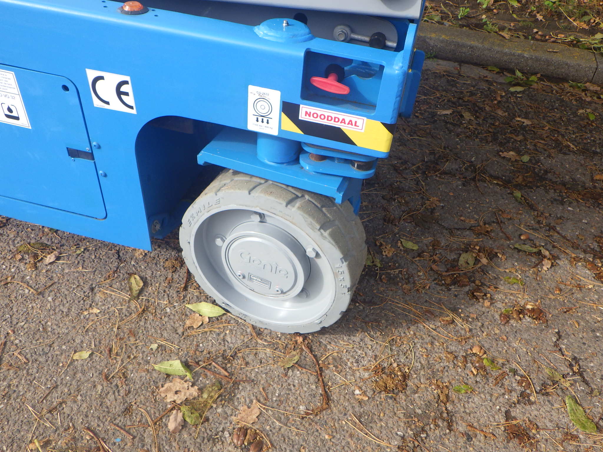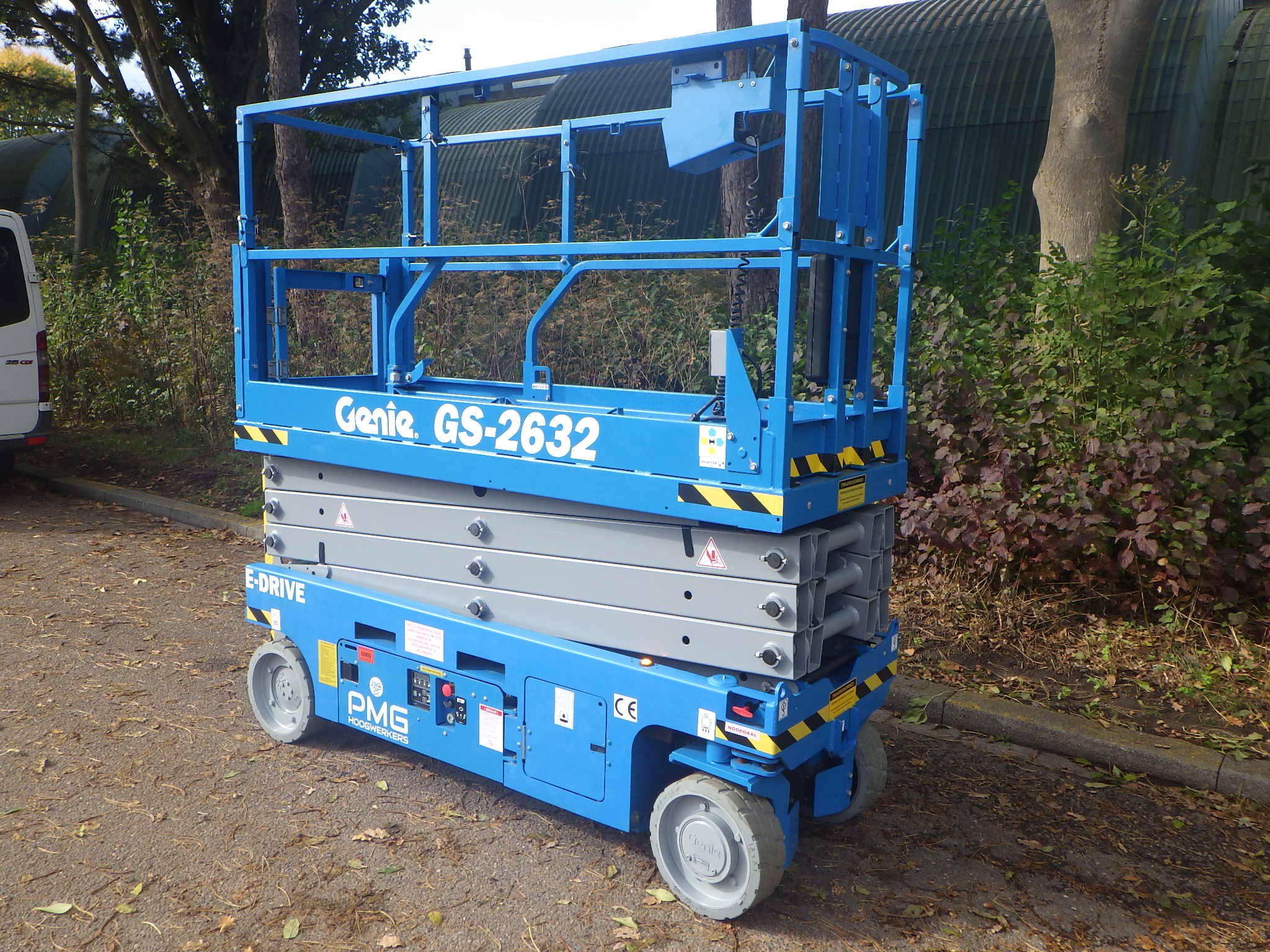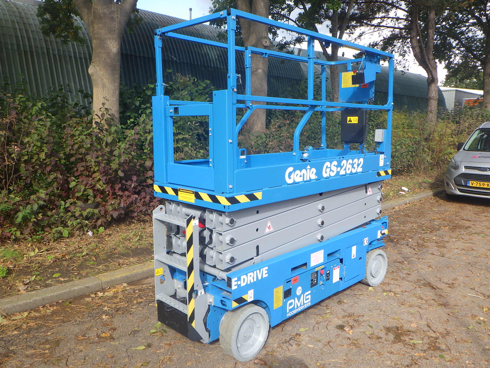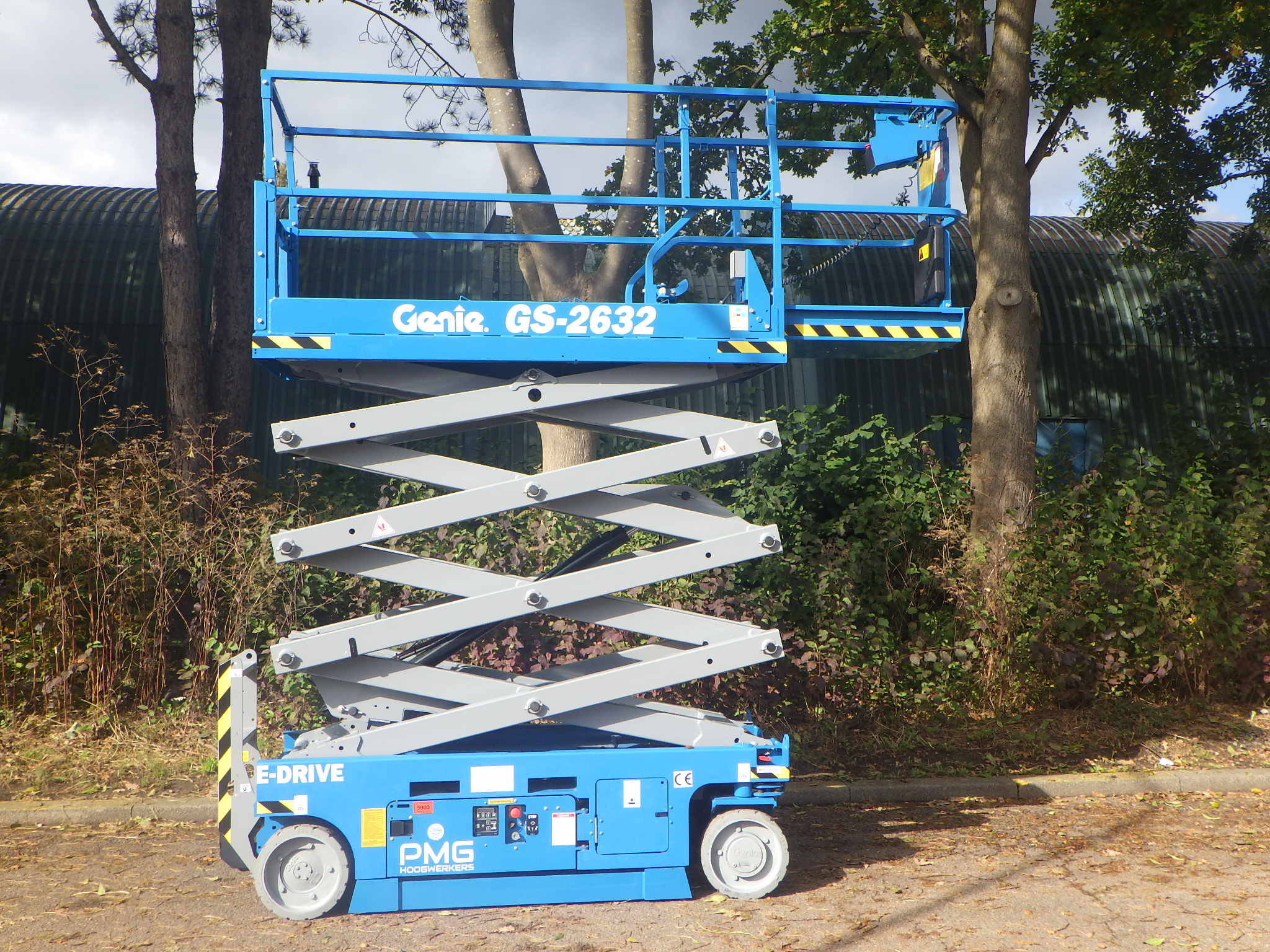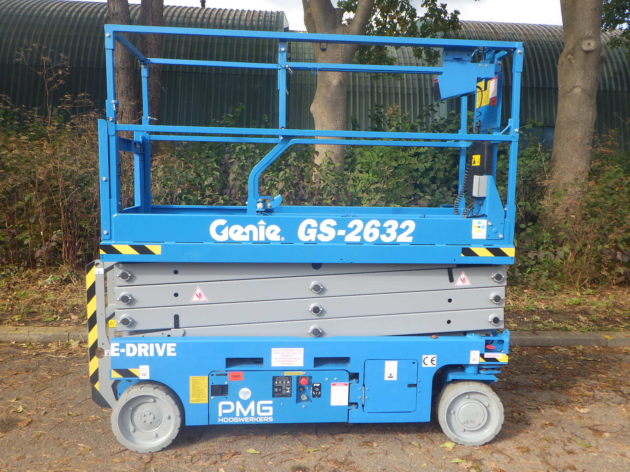 This Genie GS-2632 scissorlift is a machine in outstanding condition.The working height of 10 meter, platform capacity of 227 kilograms and only 81 centimeter wide gives this machine great flexibility. The non-marking tyres, a low operating weight, electronic steering, compact build and an extra 90 cenitmeter extendable platform, give this GS-2632 the perfect properties for a wide range of tasks. Because this machine can maneuver at full hight it gives everything to increase your productivity. Are you looking for a used scissorlift in an excellent condition, with a safety inspection and directly employable, then is this Genie GS2632 of PMG