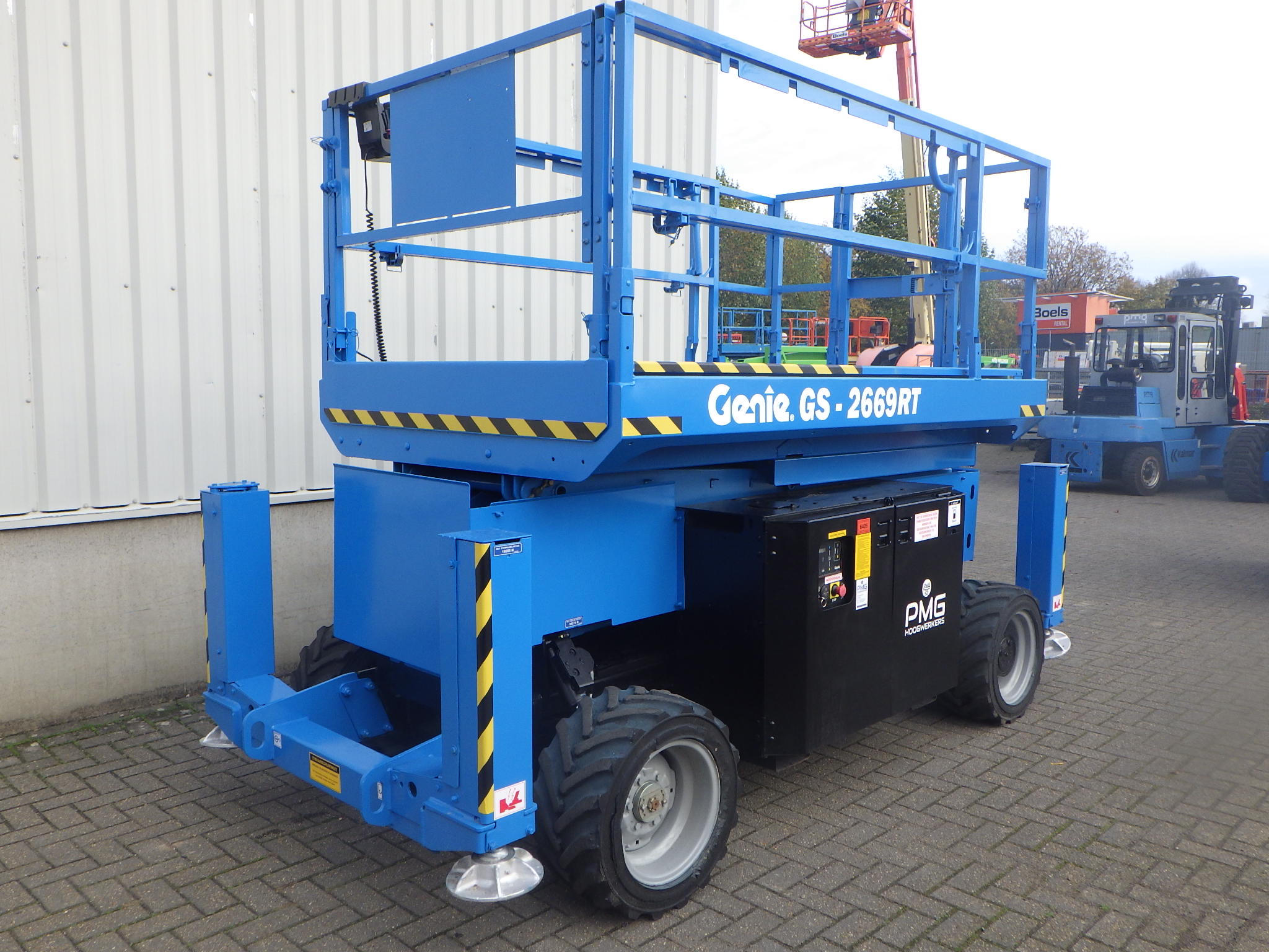 This strong Genie GS-3268DC scissorlift is a machine in outstanding condition.The working height of 12 meter, platform capacity uptill 454 kilograms gives this machine great flexibility in the toughest conditions. The electronic steering, compact build and an extra 1.53 cenitmeter extendable platform, give this GS3268DC the perfect properties for the toughest building sites. Because this machine can maneuver at full hight, it has everything to increase your productivity. Are you looking for a used scissorlift in an excellent condition, with a safety inspection and directly employable, then is this Genie GS 3268 dc of PMG Techniek the best buy.