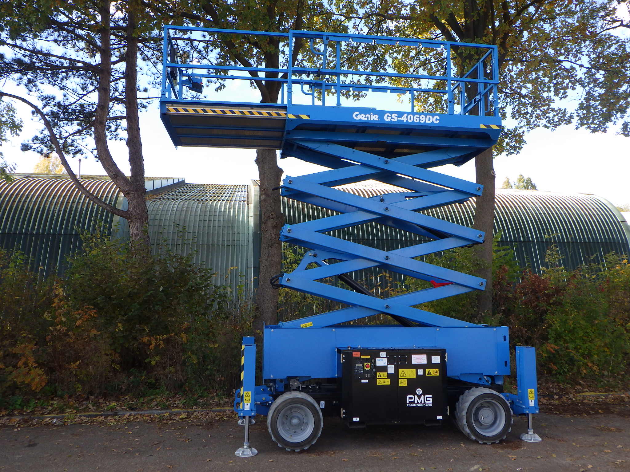 This strong Genie GS-4069 scissorlift is a machine in outstanding condition.The working height of 14 meter, platform capacity uptill 363 kilograms gives this machine great flexibility in the toughest conditions. The steering, compact build and an extra 1,52 cenitmeter extendable platform, give this GS4069 the perfect properties for the toughest building sites. Because this machine can maneuver at full hight, it has everything to increase your productivity. Are you looking for a used scissorlift in an excellent condition, with a safety inspection and directly employable, then is this Genie GS 4069 of PMG Techniek the best buy.