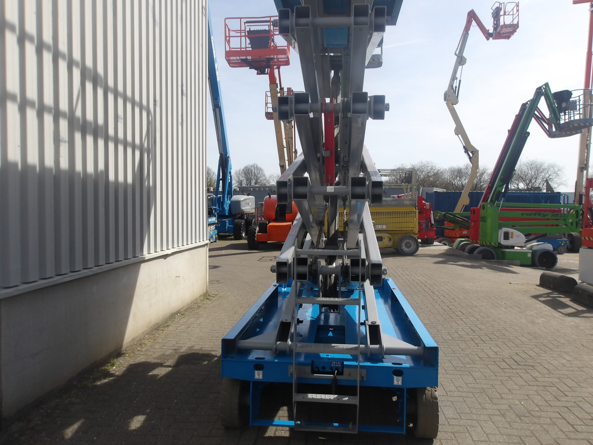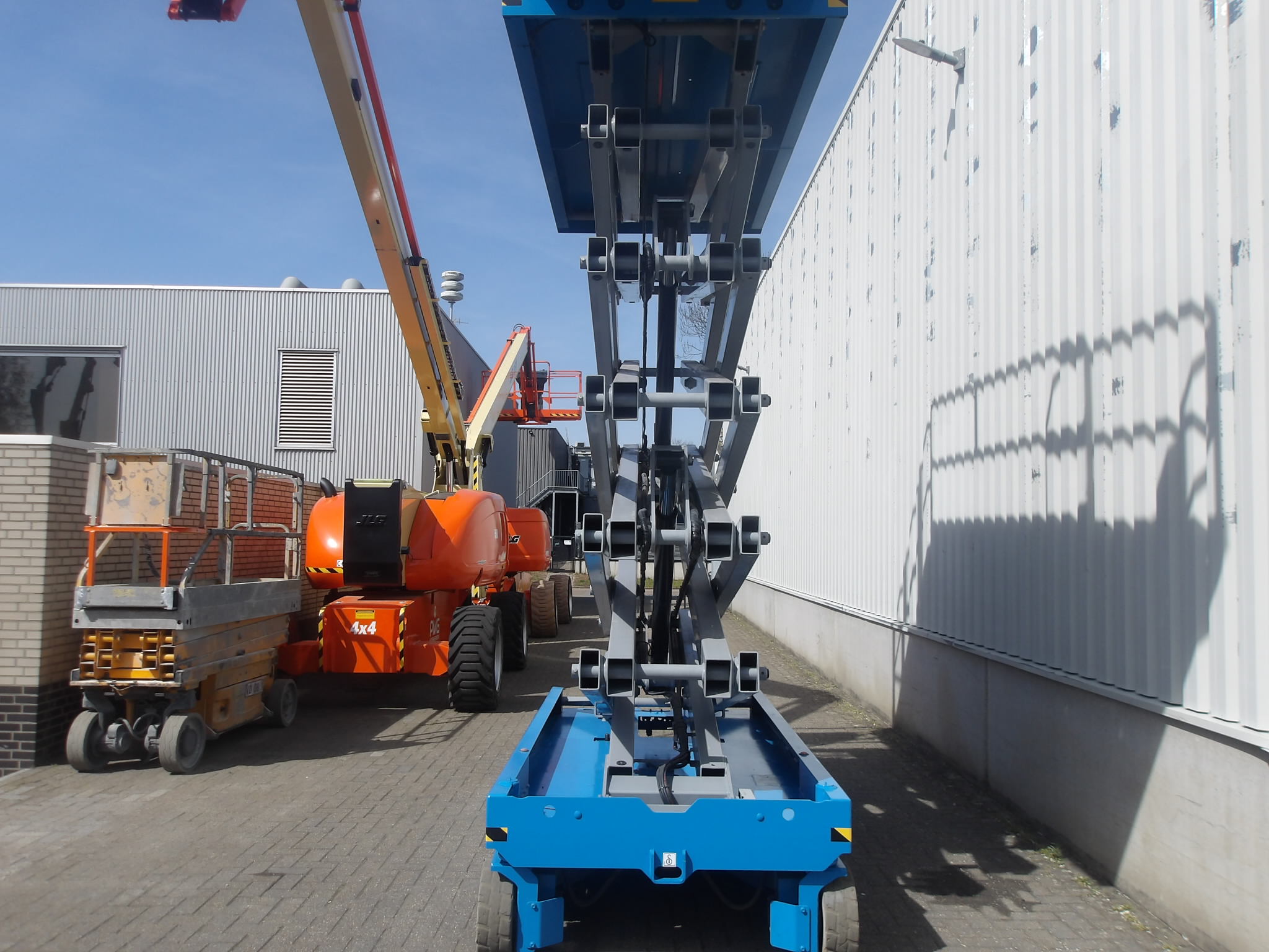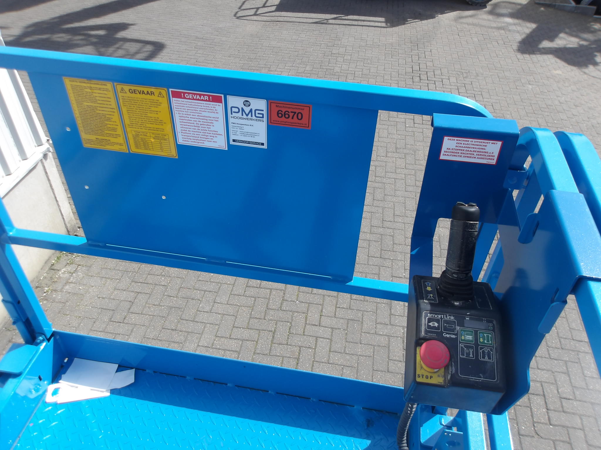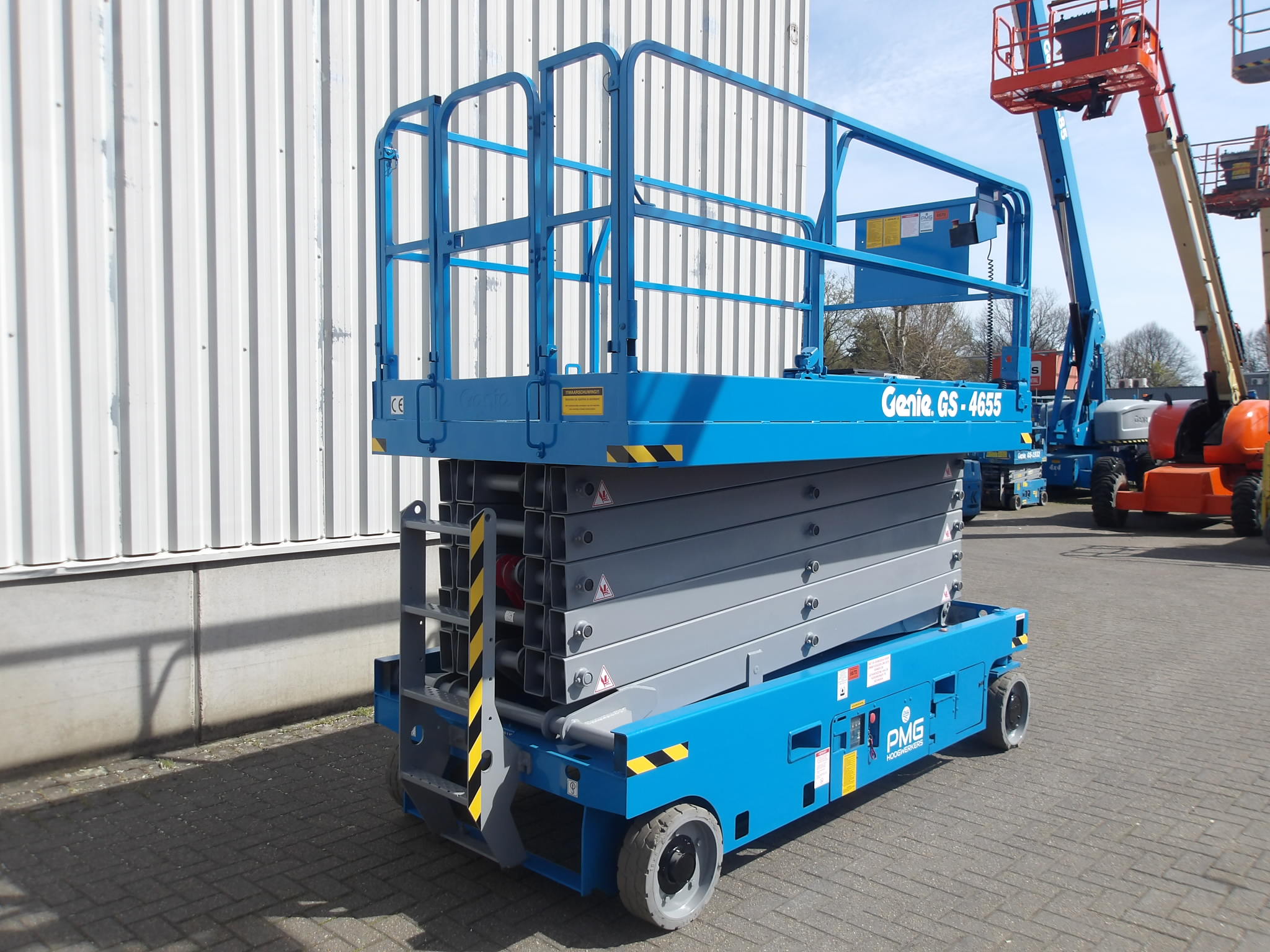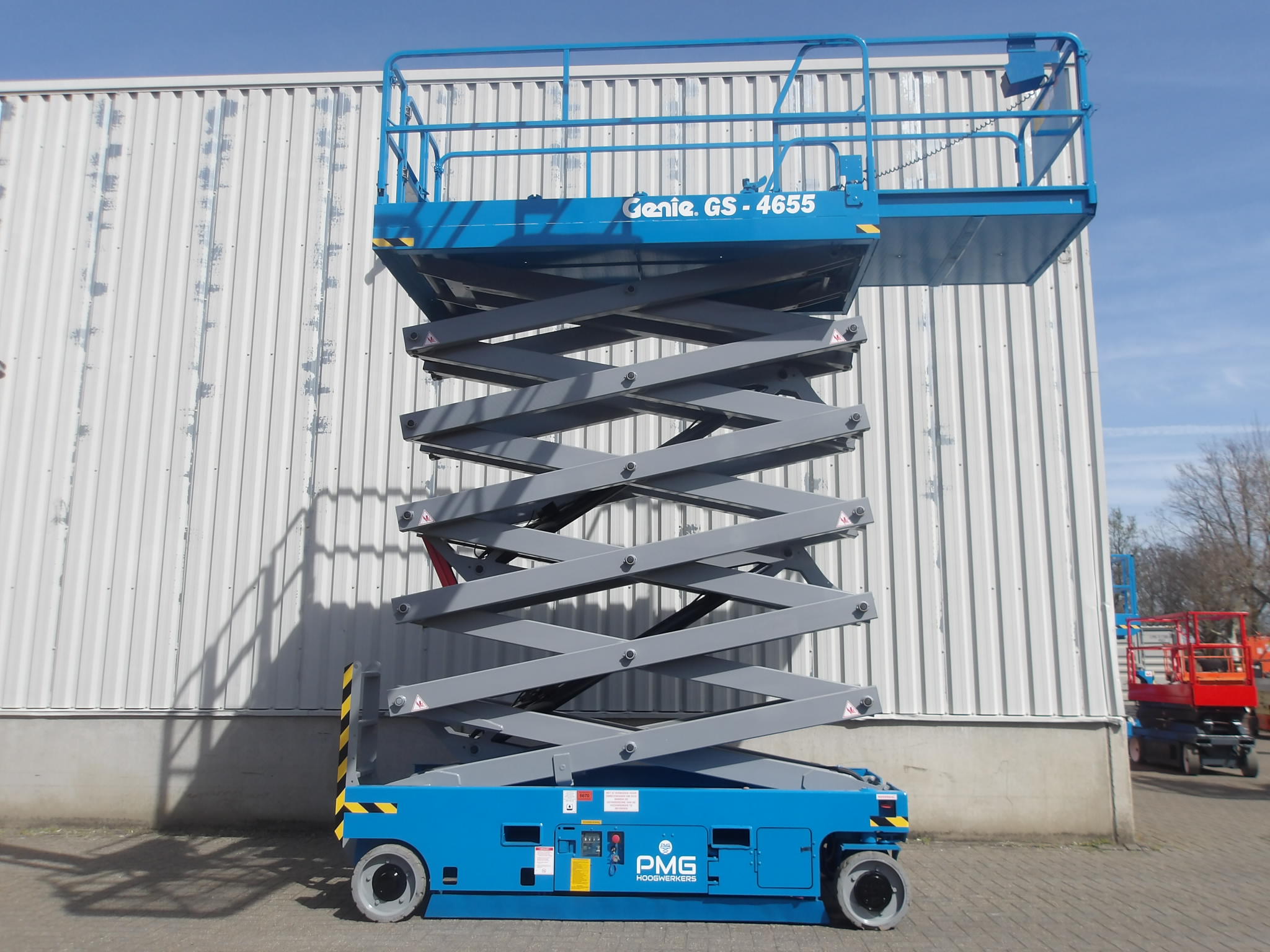Deze Genie GS-4655 schaarhoogwerker is een in uitstekende staat verkerende machine. Met een werkhoogte van 15,95 meter en een platformbelasting tot 350 kilogram is de schaarhoogwerker perfect om uw productiviteit te verhogen. Met non-marking banden, elektrische besturing, compacte bouw en grote hoogte heeft de Genie GS-4655 perfecte eigenschappen voor een zeer uitgebreide range van taken. Doordat deze machine op volledige hoogte kan rijden en slechts 1,40 meter breed is, biedt deze machine een enorme flexibiliteit. Zoekt u een tweedehands schaarhoogwerker die in een uitstekende staat verkeert, gekeurd is én direct inzetbaar is, dan bent u bij deze Genie GS-4655 van PMG Hoogwerkers aan het juiste adres!