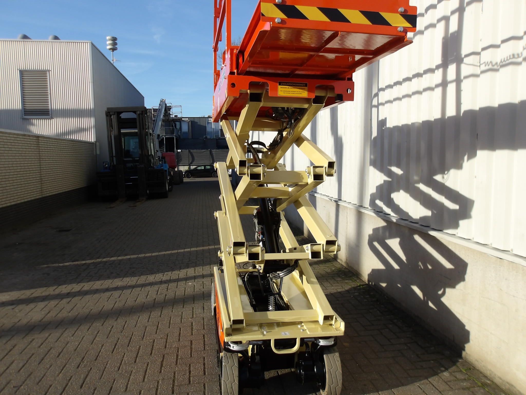 This JLG 1930ES scissorlift is a machine in outstanding condition.The working height of 8 meter, platform capacity of 227 kilograms and only 76 centimeter wide gives this machine great flexibility. The non-marking tyres, a low operating weight, electronic steering, compact build and an extra 90 cenitmeter extendable platform, give this 1930ES the perfect properties for a wide range of tasks. Because this machine can maneuver at full hight it gives everything to increase your productivity. Are you looking for a used scissorlift in an excellent condition, with a safety inspection and directly employable, then is this JLG 1930 ES of PMG Techniek the best buy.