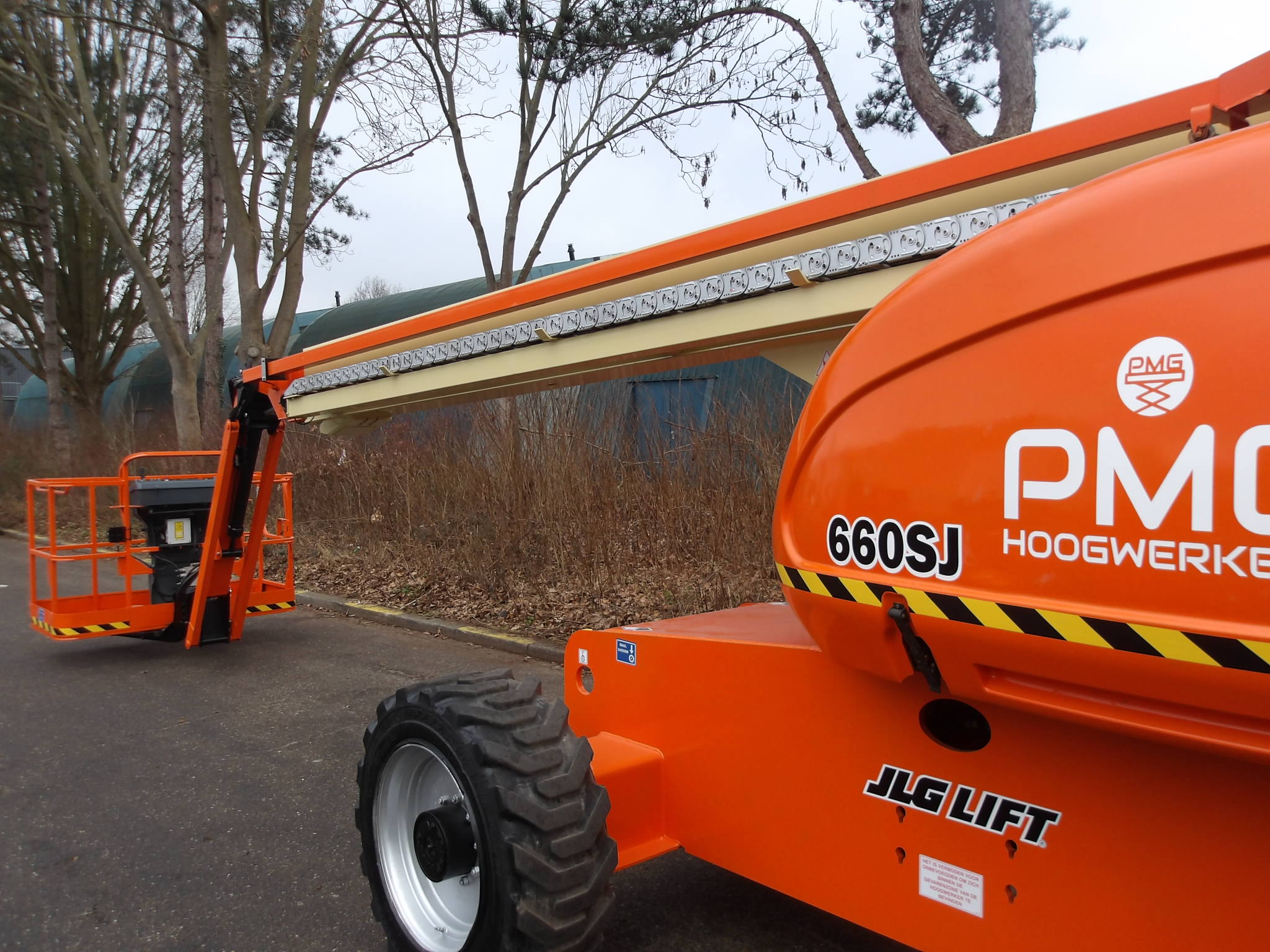 This JLG 660SJ boomlift is a machine in outstanding condition.The working height of 22 meters and 18 meter horizontal reach give this 660 SJ a big reach. The extra 1.50 meter jib and the fact that he can maneuver very precise at full hight gives it great flexibilty to increase your productivity. Are you looking for a used boomlift in an excellent condition, with a safety inspection and directly employable, then is this Genie JLG 660SJ of PMG Techniek the best buy.