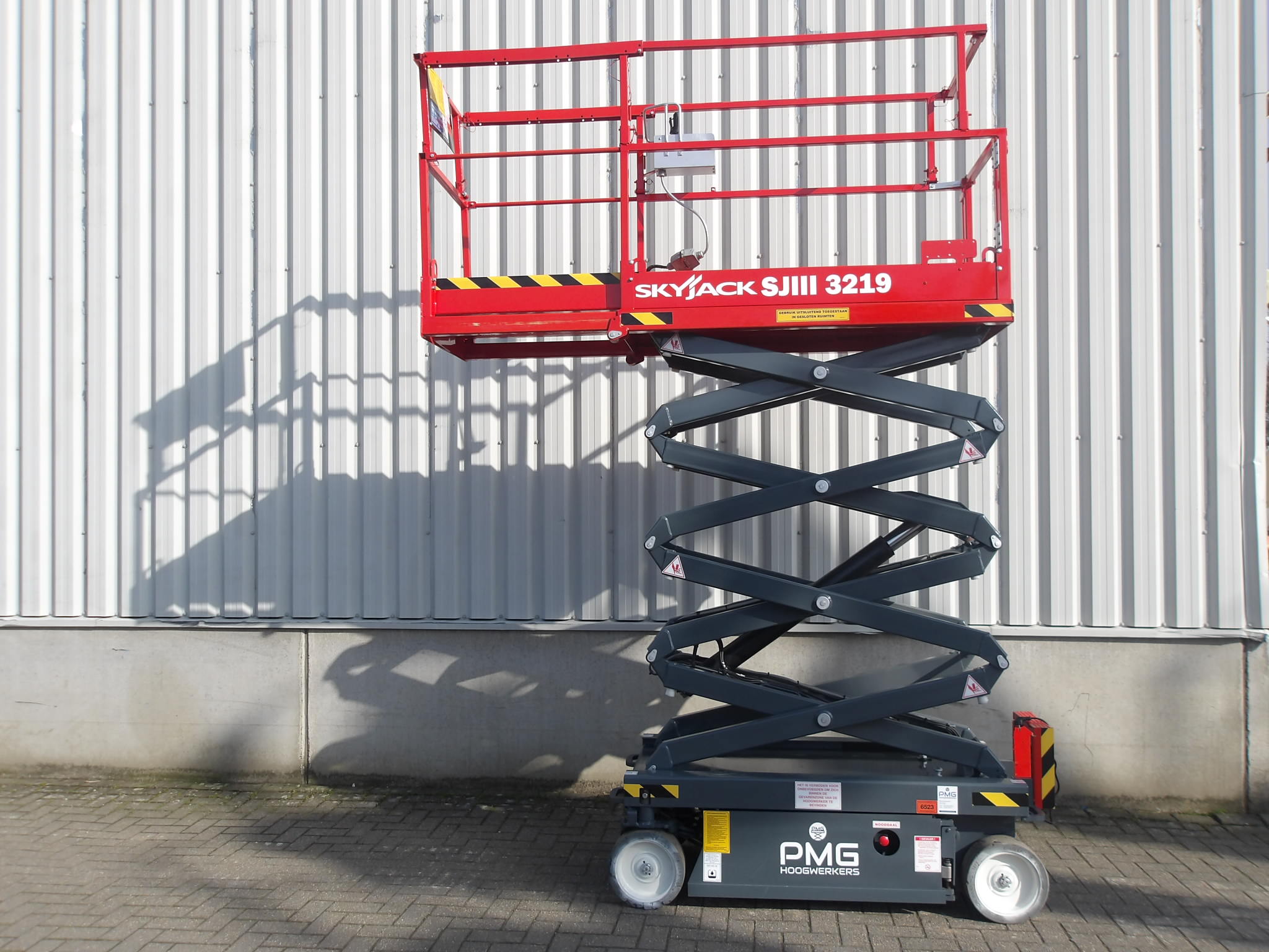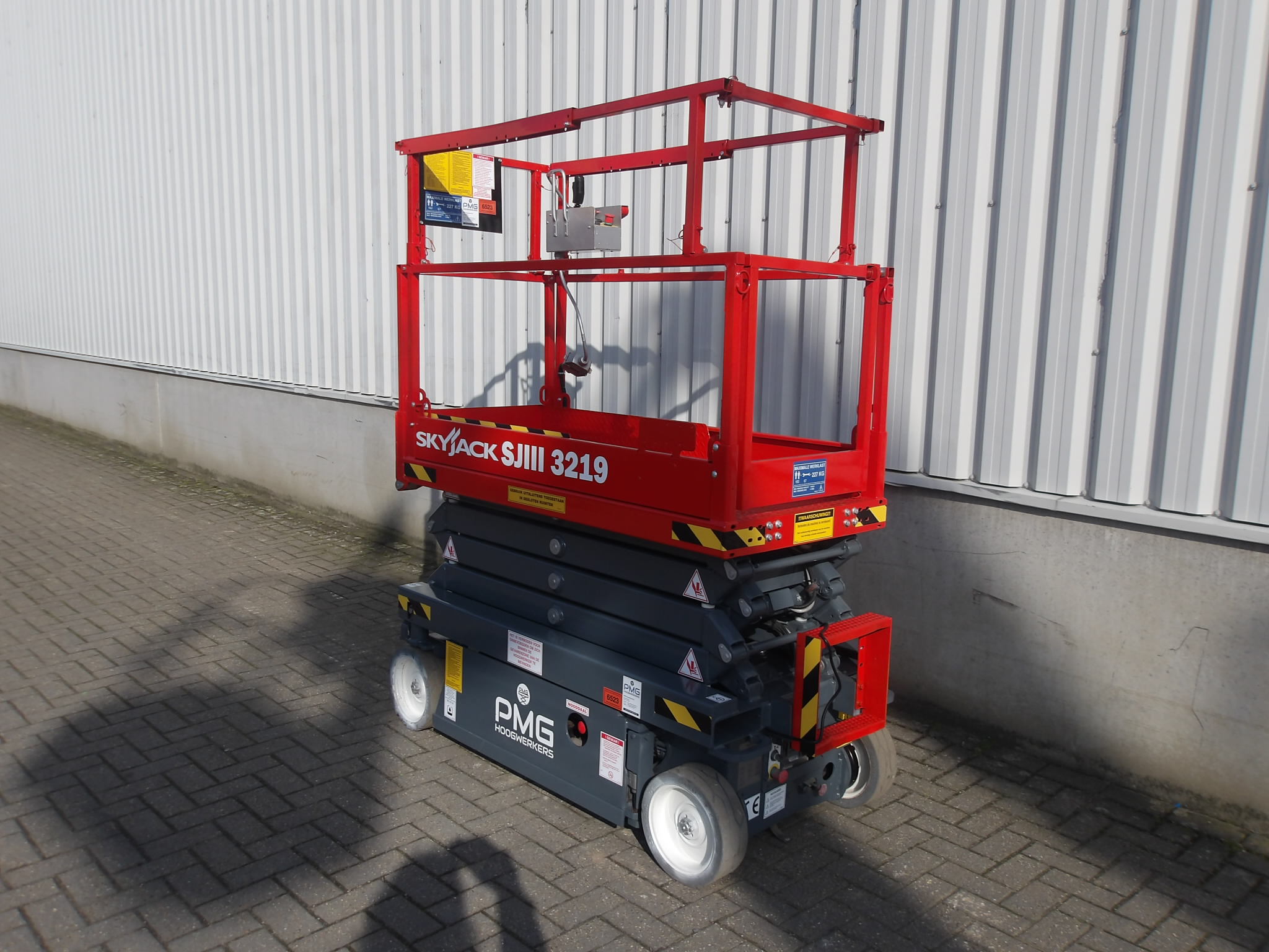 This skyJack SJ3219 scissorlift is a machine in outstanding condition. With a working height of 8 meter and a platform capacity of 227 kilograms is this scissor lift perfectly fitted for inhouse and outside use. The non-marking tyres, a low operating weight, electronic steering, compact build and an extra 90 cenitmeter extendable platform, give this SJ3219 the perfect properties for a wide range of tasks. Because this machine can maneuver at full hight it gives everything to increase your productivity. Are you looking for a scissorlift in an excellent condition, with a safety inspection and directly employable, then is this Sky Jack SJ 3219 of PMG Hoogwerkers the best buy.