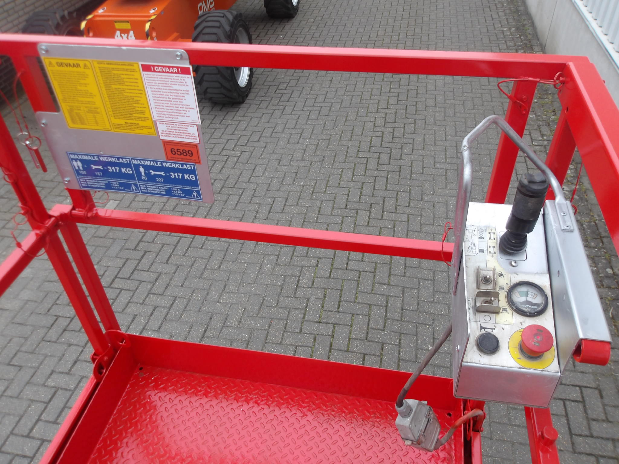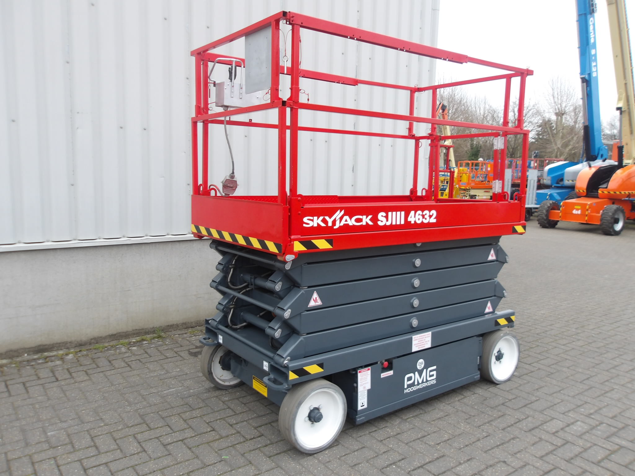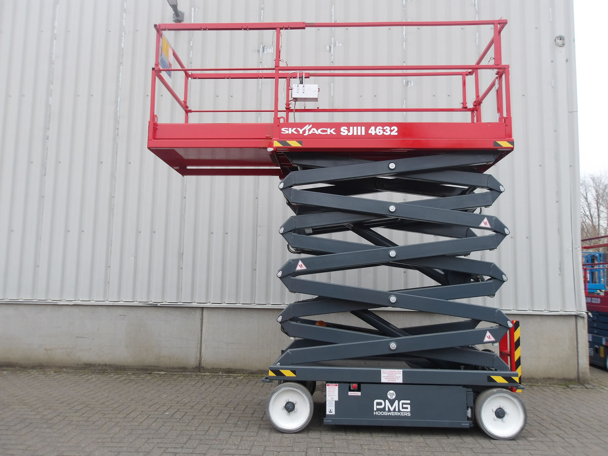 This SkyJack SJ4632 scissorlift is a machine in outstanding condition.The working height of 12 meter, platform capacity uptill 318 kilograms gives this machine great flexibility. The non-marking tyres, electronic steering, compact build and an extra 90 cenitmeter extendable platform, give this SJ 4632 the perfect properties for a wide range of tasks. Because this machine can maneuver at full hight, with only 1.20 meter of width, it has everything to increase your productivity. Are you looking for a used scissorlift in an excellent condition, with a safety inspection and directly employable, then is this Sky Jack SJ 4632 of PMG Hoogwerkers the best buy.