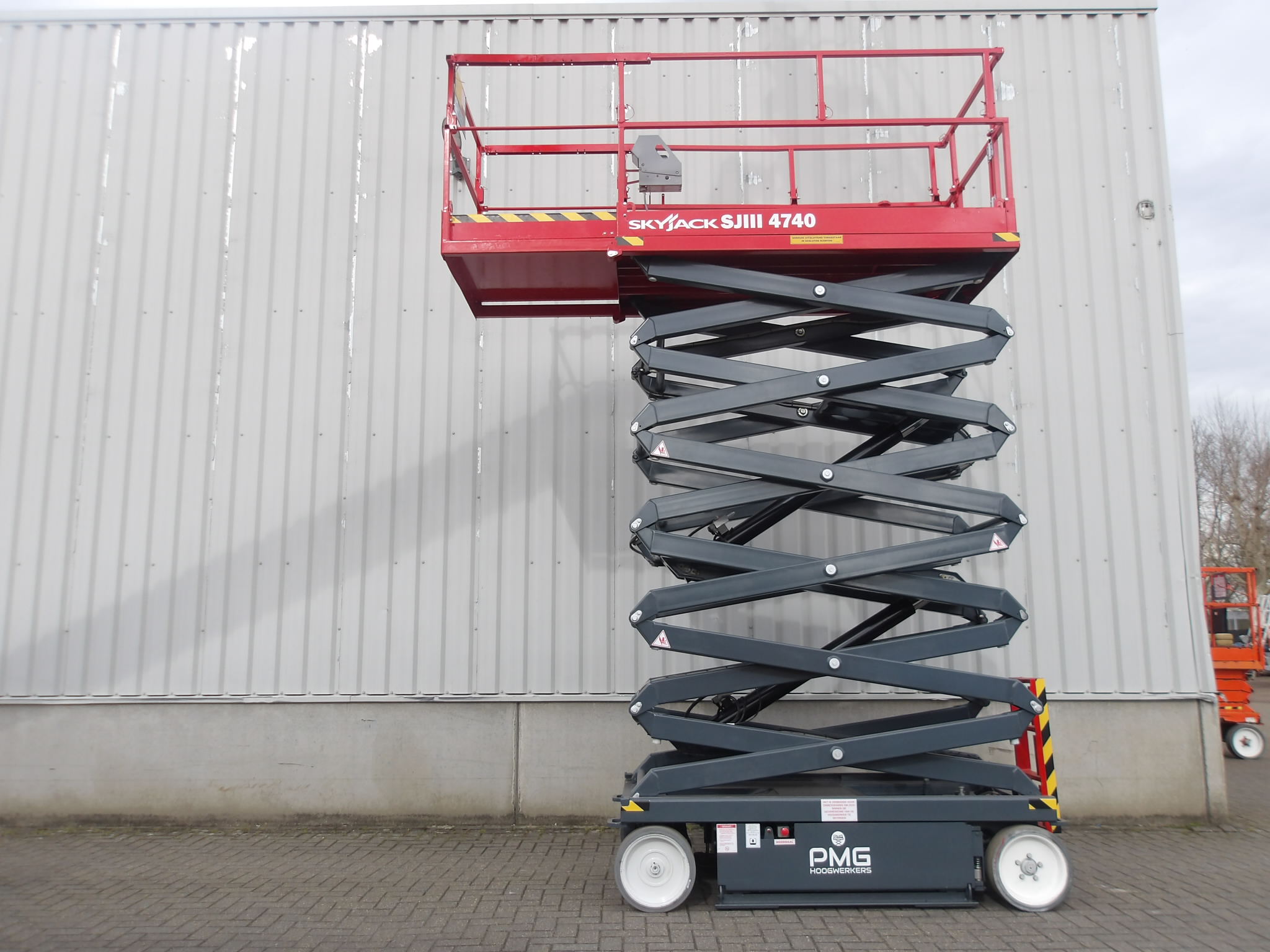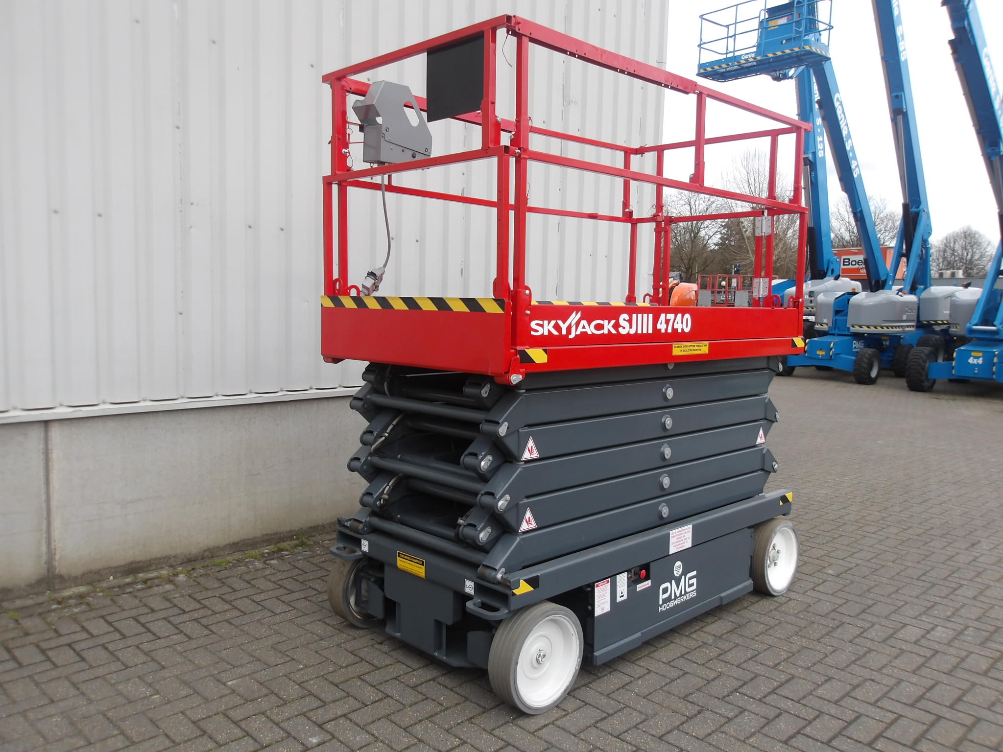 This SkyJack SJ4740 scissorlift is a machine in outstanding condition.The working height of 13,8 meter, platform capacity uptill 350 kilograms gives this machine great flexibility. The non-marking tyres, electronic steering and compact build give this SJ4047 the perfect properties for a wide range of tasks. Because this machine can maneuver at full hight, with only 1.20 meter of width, it has everything to increase your productivity. Are you looking for a used scissorlift in an excellent condition, with a safety inspection and directly employable, then is this Sky Jack SJ 4740 of PMG Techniek the best buy.