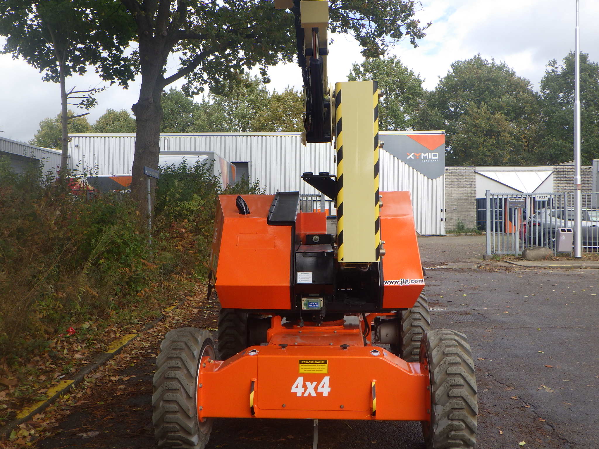 Deze JLG H340AJ hybride kniktelescoop hoogwerker is een in uitstekende staat verkerende machine. Met een werkhoogte van 12,33 meter en zijdelings bereik van 6,06 meter heeft deze JLG H340AJ hybride kniktelescoophoogwerker een groot bereik. De jib van 1,22 meter en 4x4 aandrijving