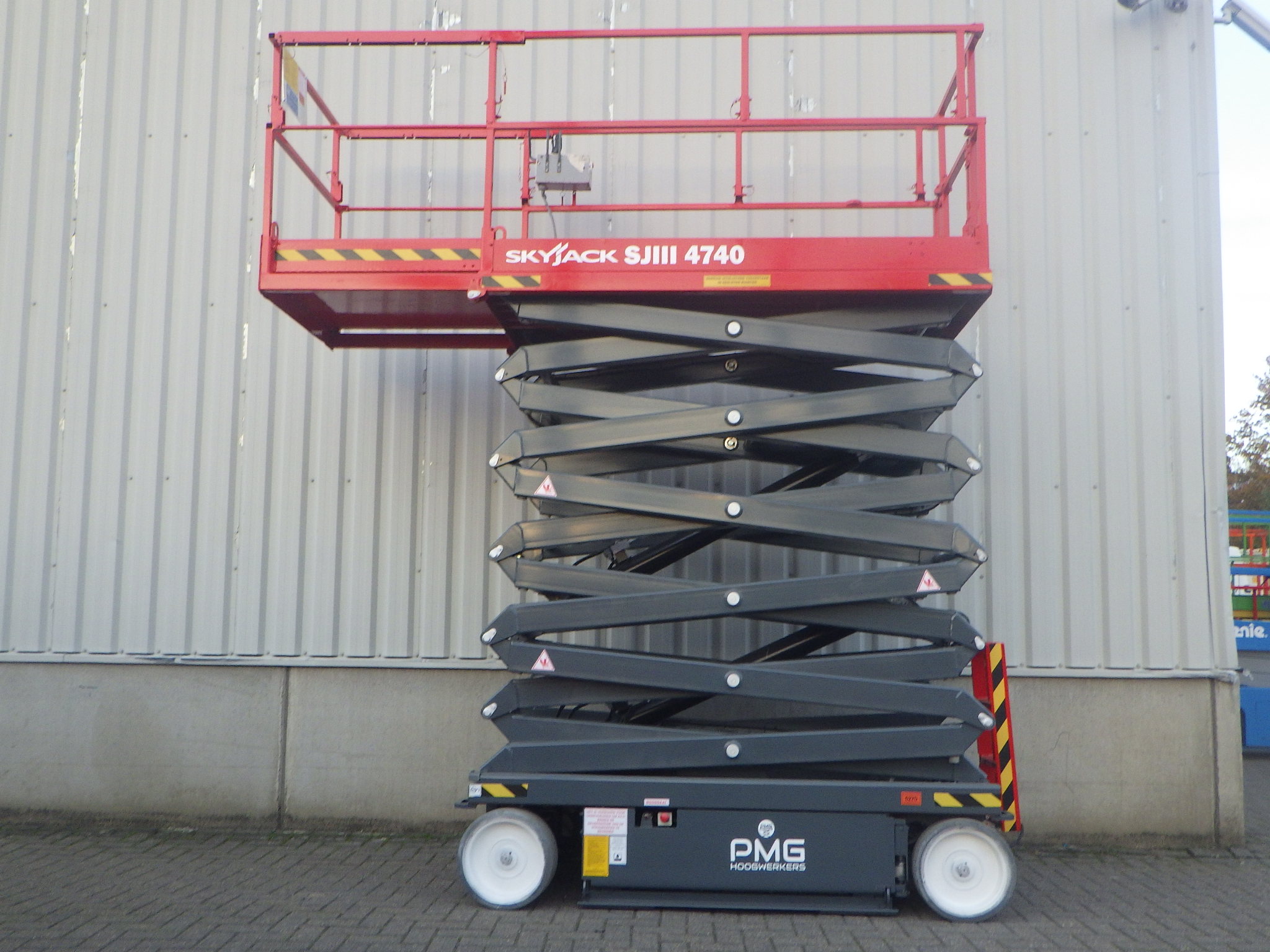 Deze SkyJack SJ4740 schaarhoogwerker is een in uitstekende staat verkerende machine. Met een werkhoogte van 13,8 meter en een platformbelasting tot 350 kilogram is de schaarhoogwerker perfect om uw productiviteit te verhogen. Met non-marking banden, elektrische besturing, compacte bouw en grote hoogte heeft de SkyJack SJ4740 perfecte eigenschappen voor een zeer uitgebreide range van taken. Doordat deze machine op volledige hoogte kan rijden en slechts 1,20 meter breed is, biedt deze machine een enorme flexibiliteit. Zoekt u een tweedehands schaarhoogwerker die in een uitstekende staat verkeert, gekeurd is én direct inzetbaar is, dan bent u bij deze Skyjack SJ4740 van PMG Hoogwerkers aan het juiste adres!